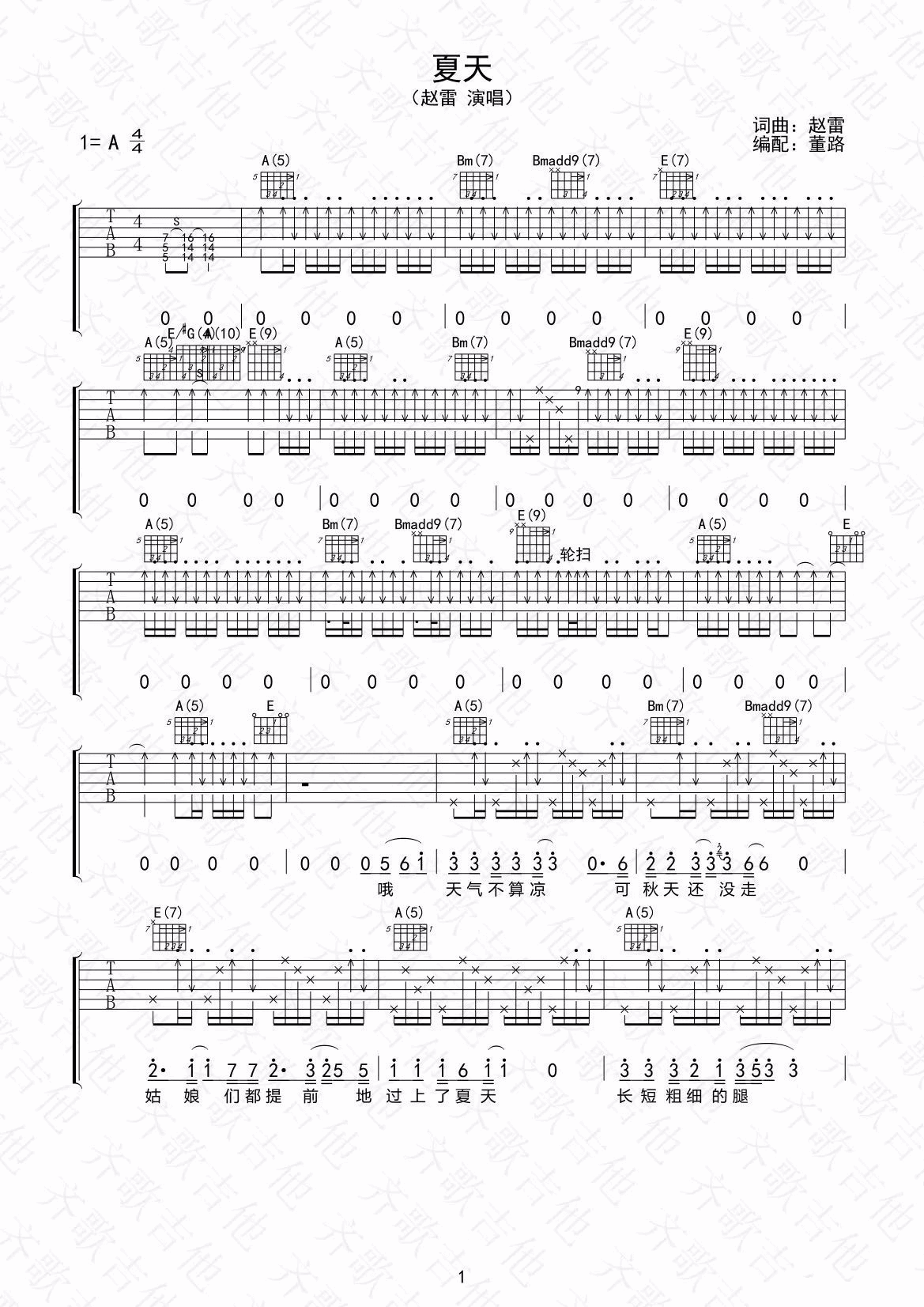 > 夏天 A调原版编配
