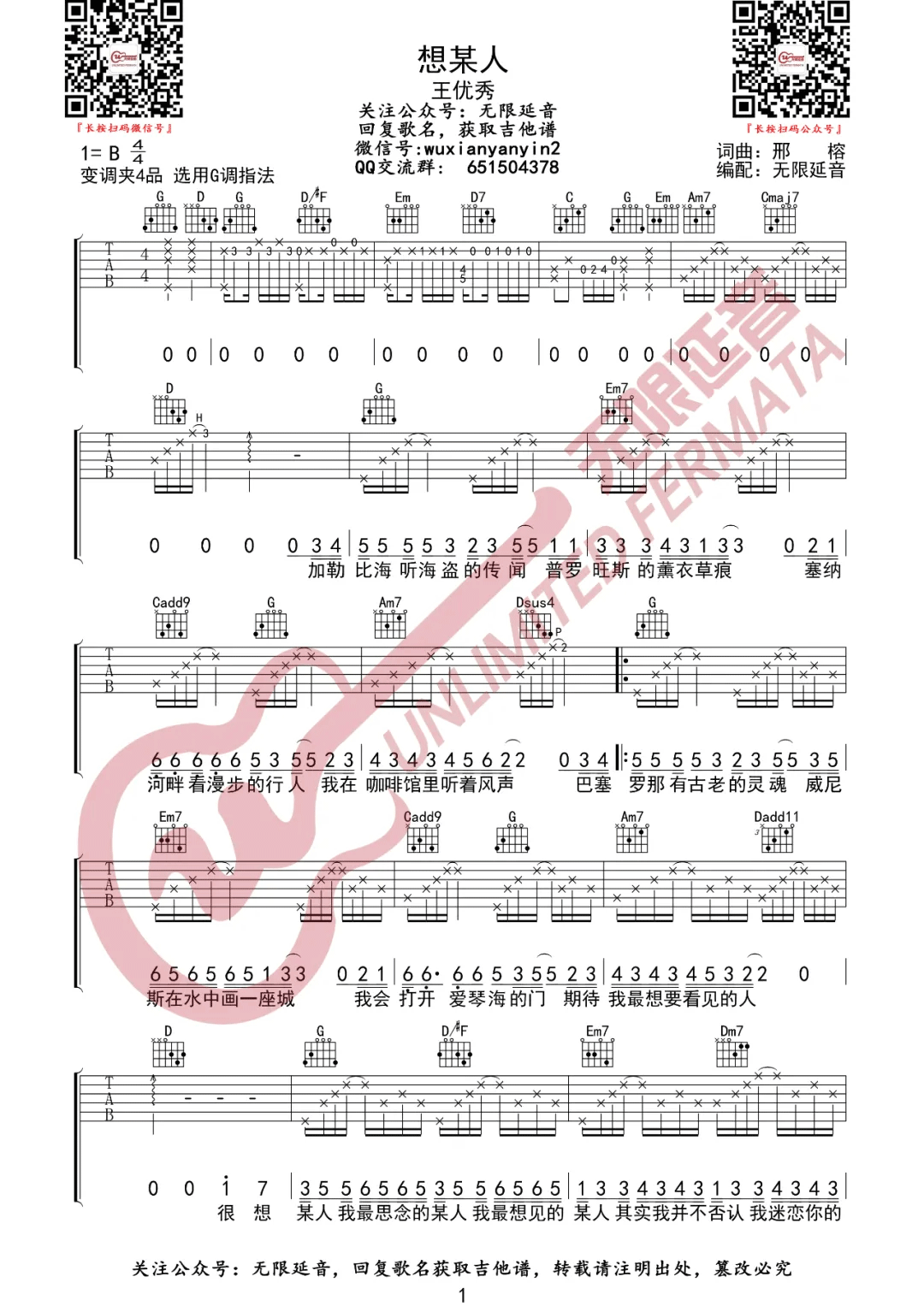 > 想某人 G调原版编配