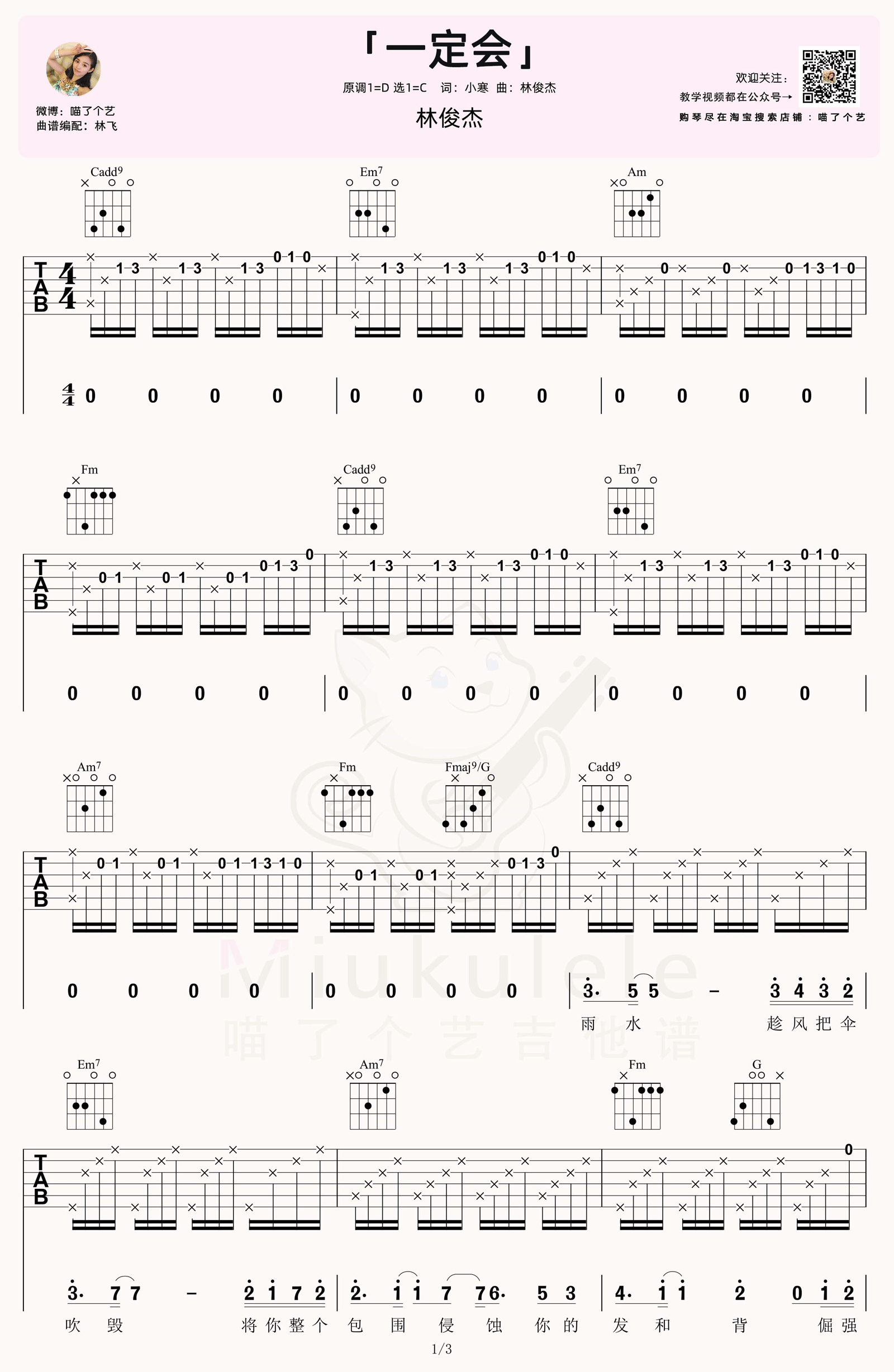 > 一定会 林俊杰新歌 C调指法弹唱谱