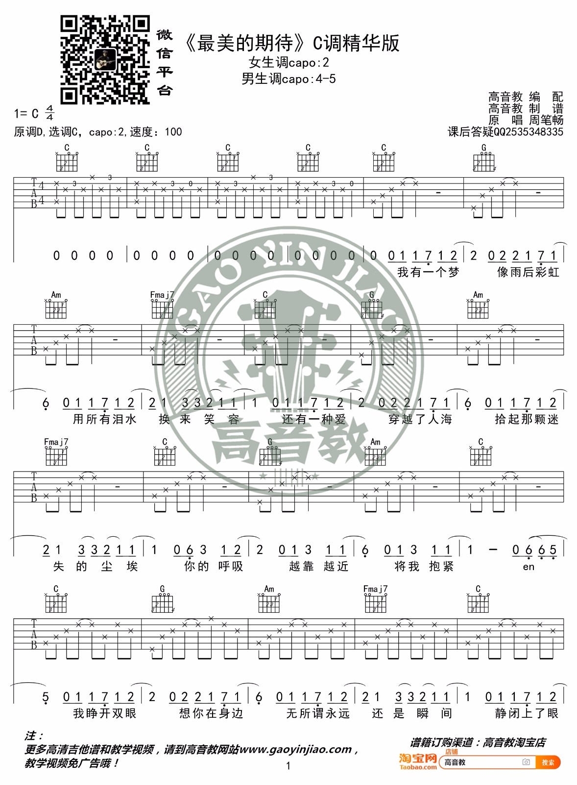 最美的期待 C调指法