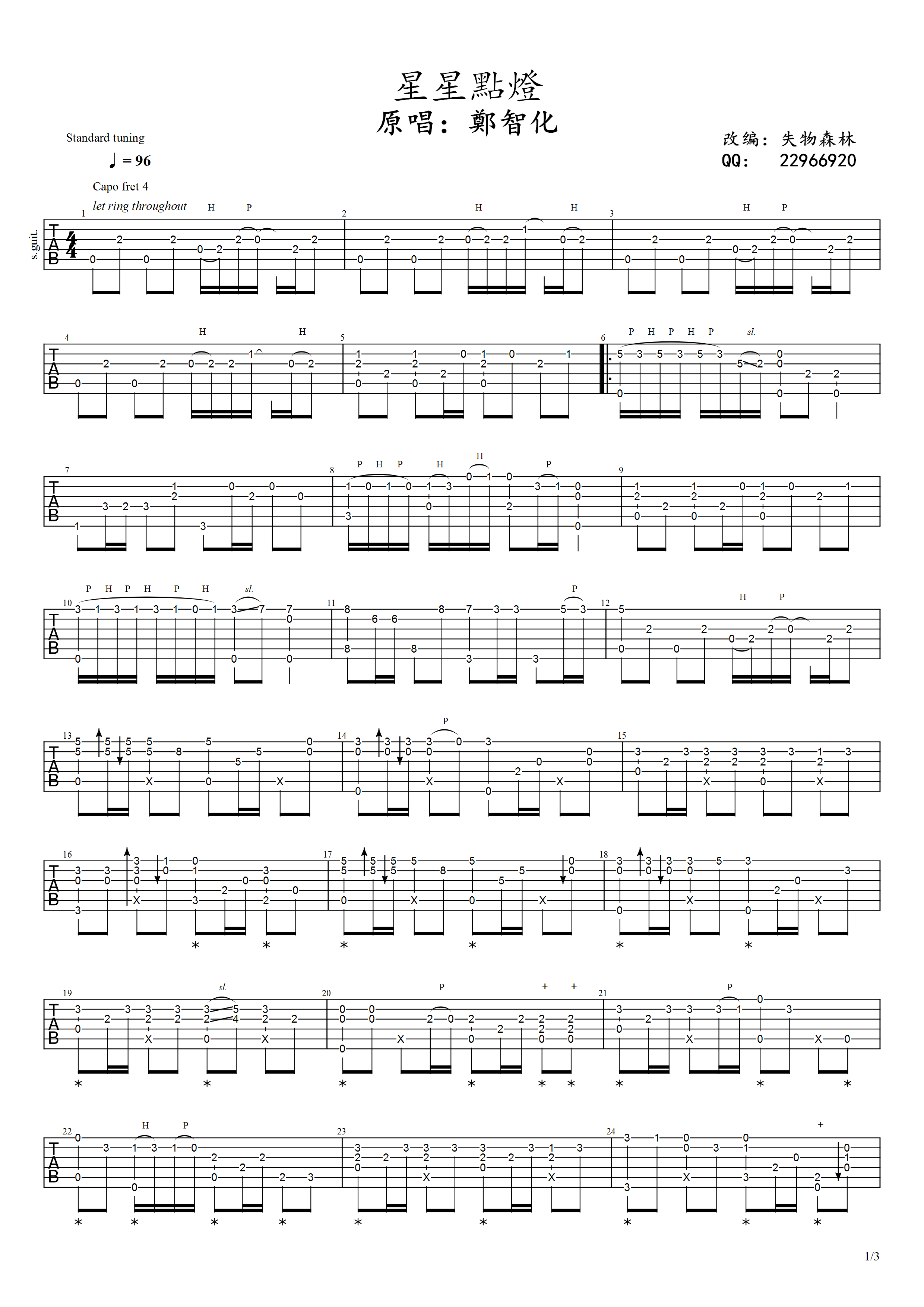 > 星星点灯指弹 原版独奏