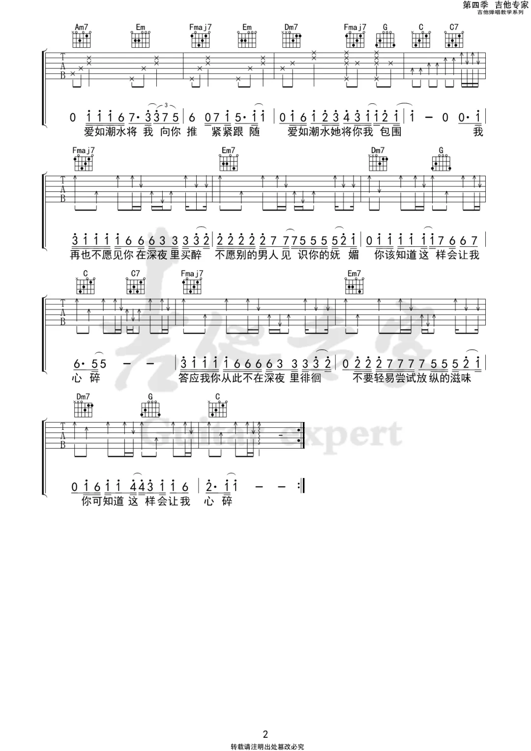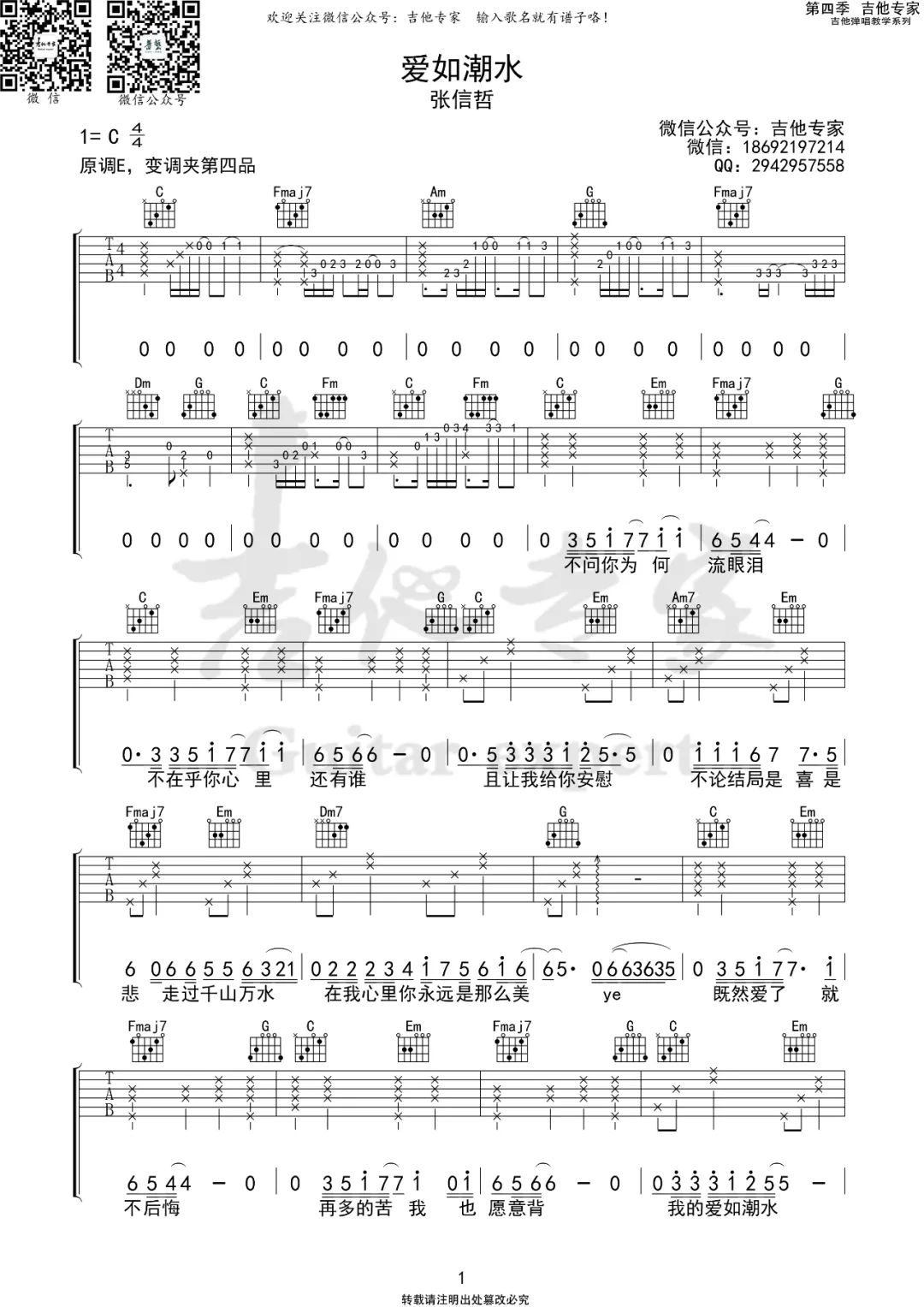 > 爱如潮水 C调原版编配