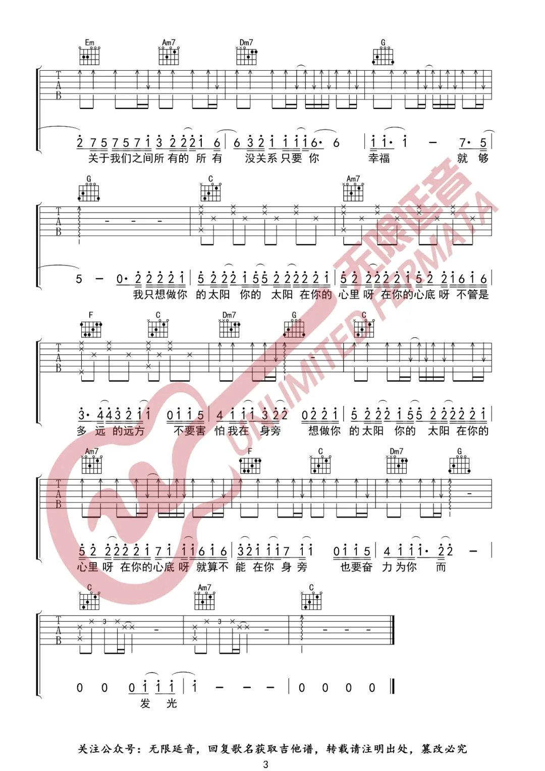 太阳 C调原版编配
