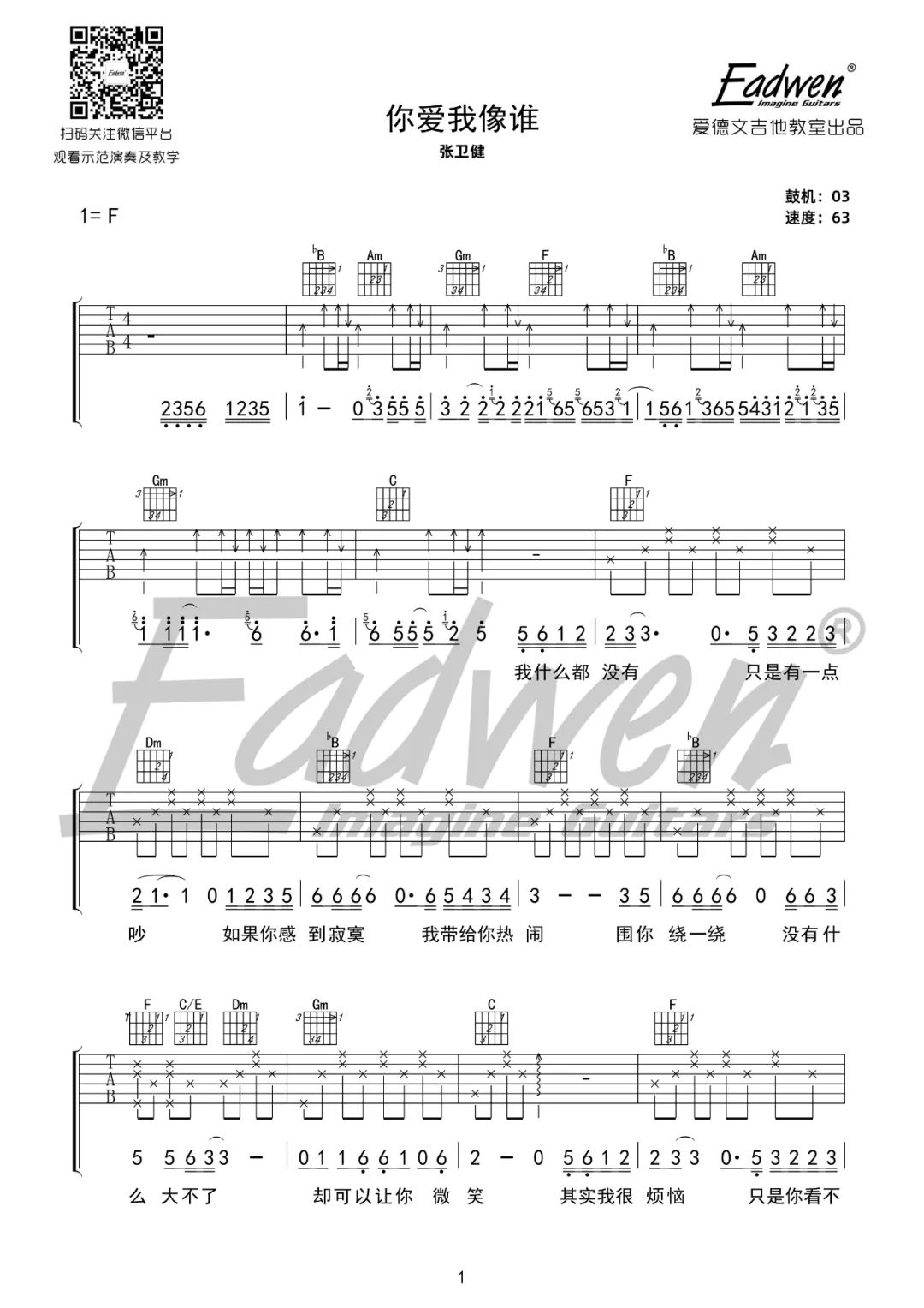 你爱我像谁 F调原版编配
