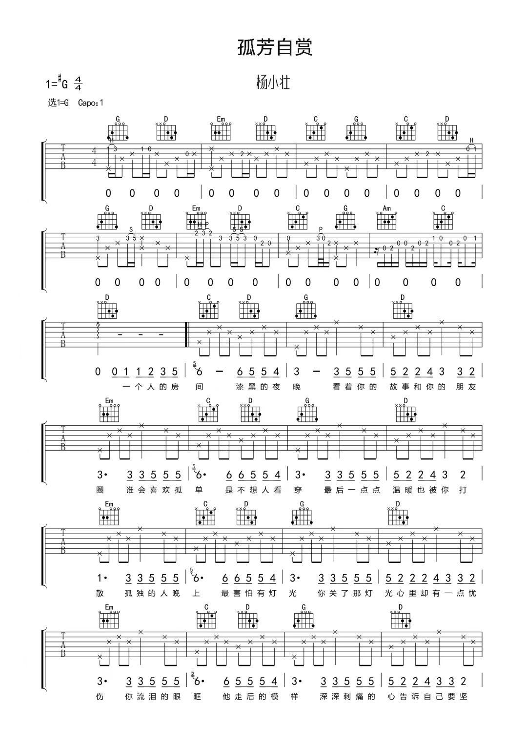 > 孤芳自赏 G调