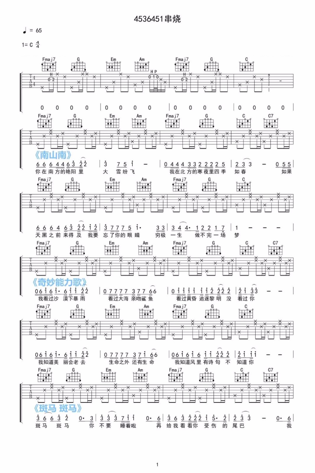 > 神奇的4536451 C调