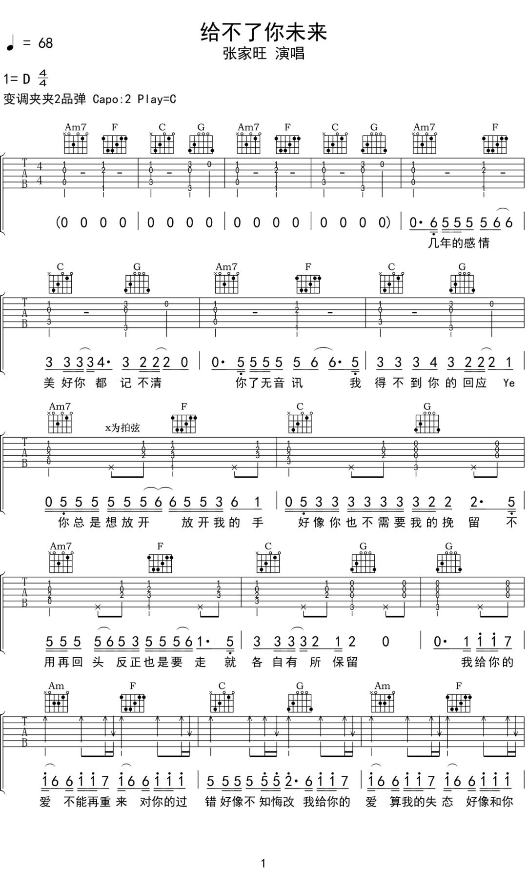 给不了你未来 C调原版