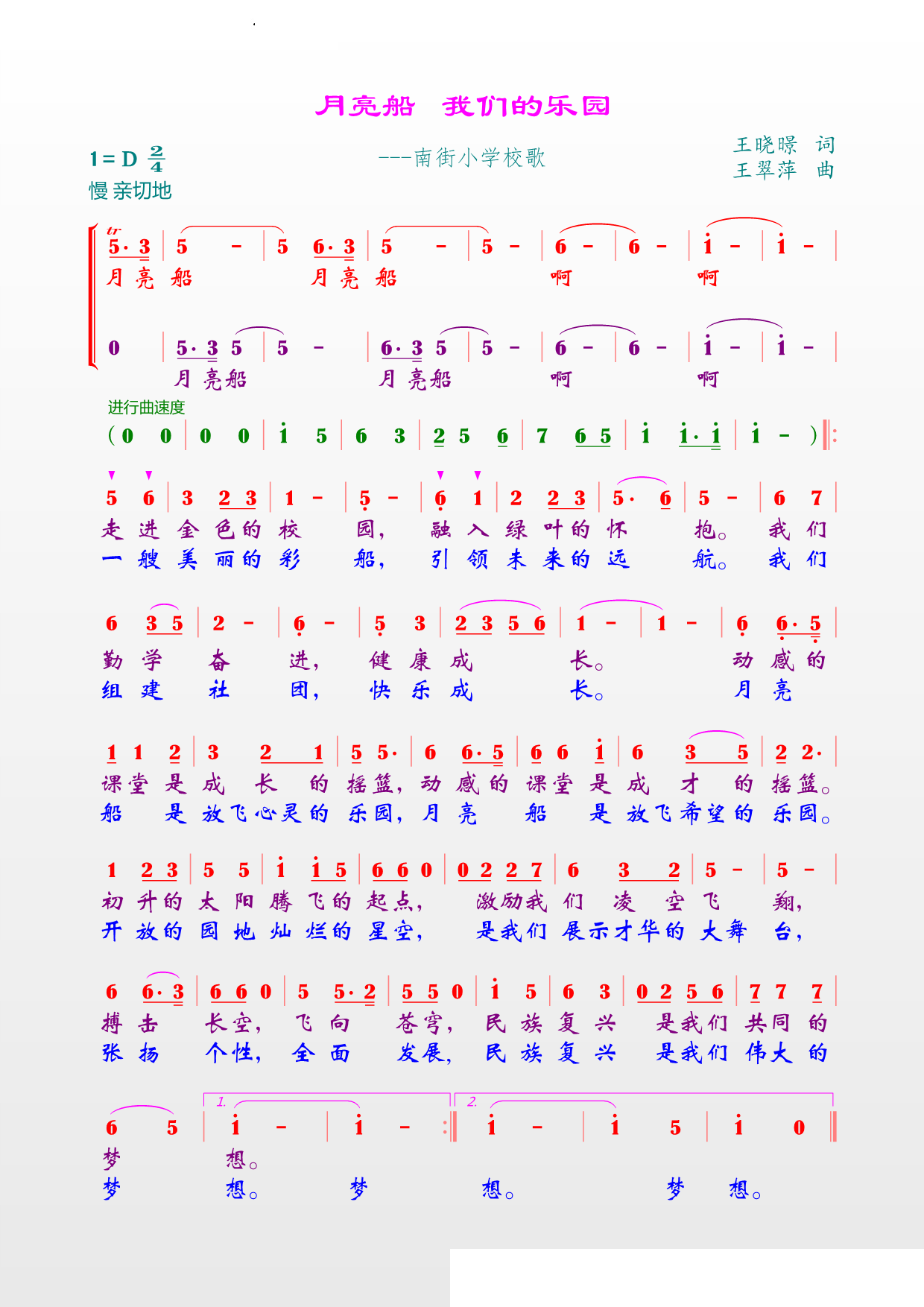 > 月亮船我们的乐园南街小学校歌