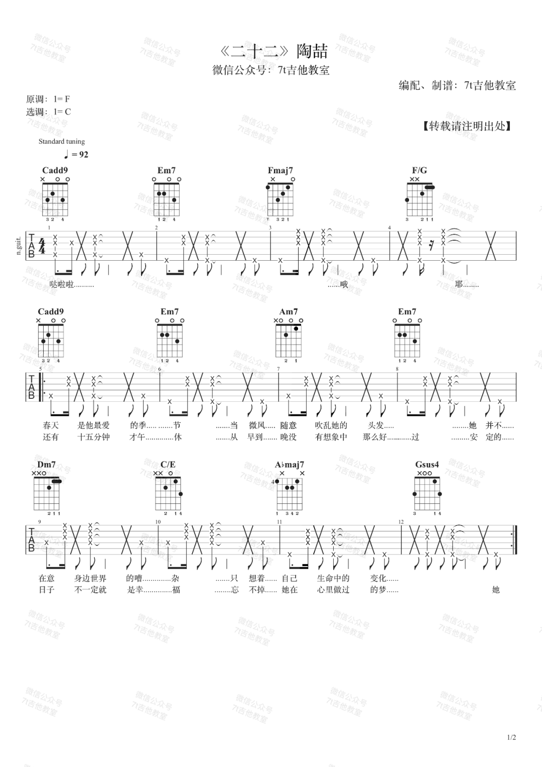 二十二 C调指法原版编配