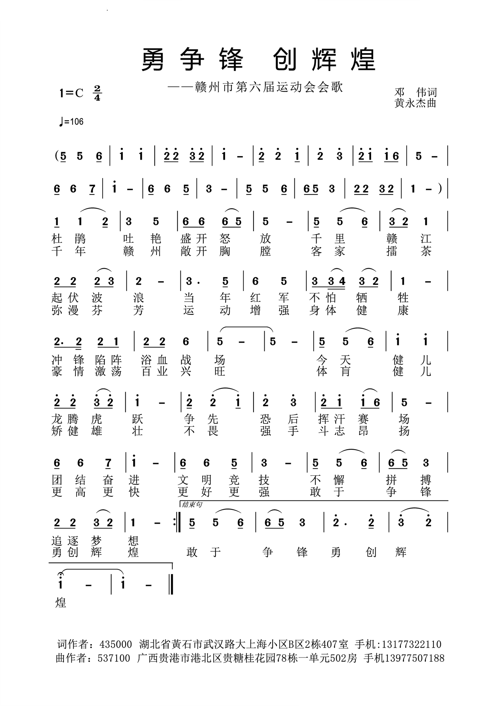 > 勇争锋创辉煌赣州市第六届运动会会歌