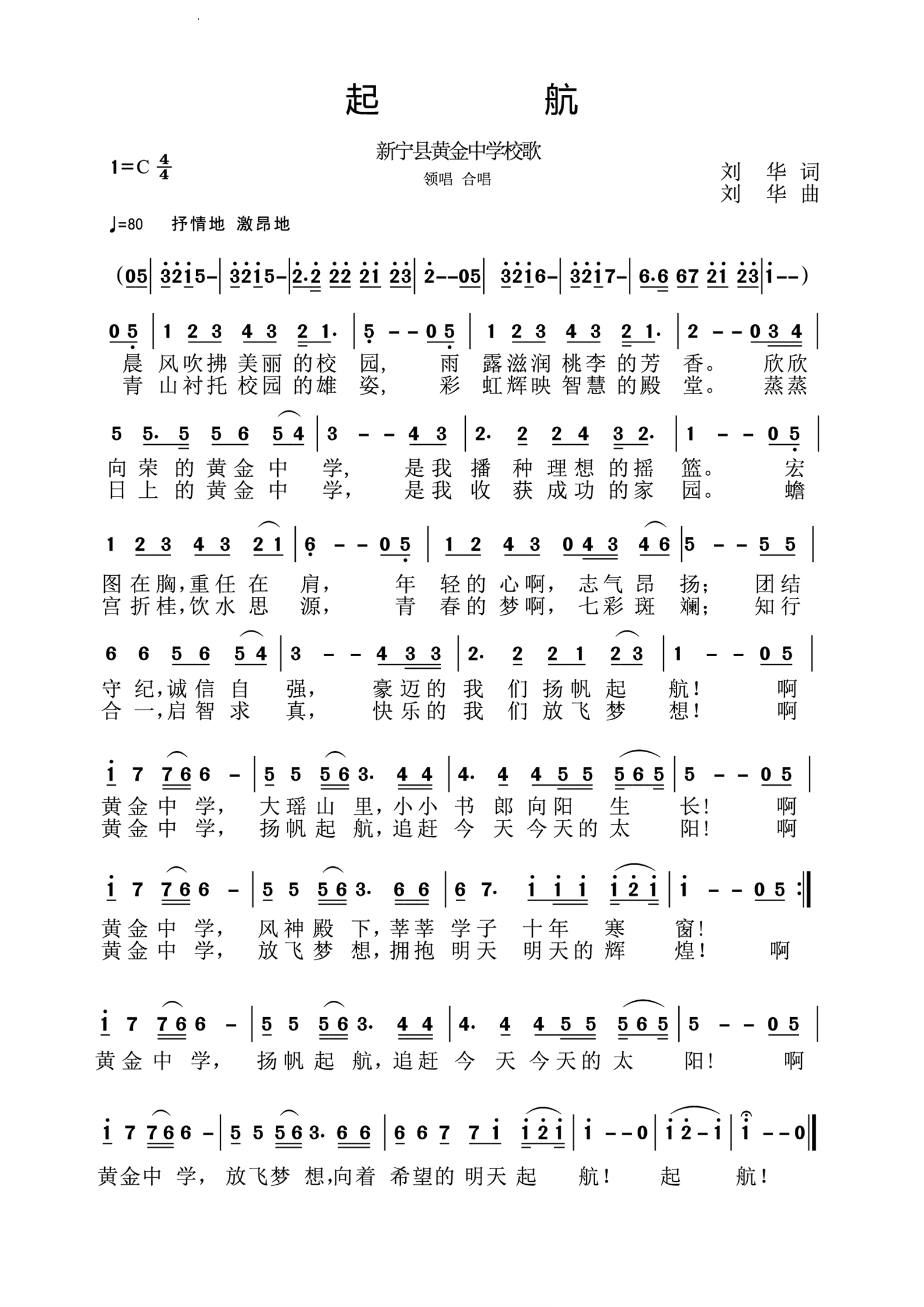 > 起航新宁县黄金中学校歌