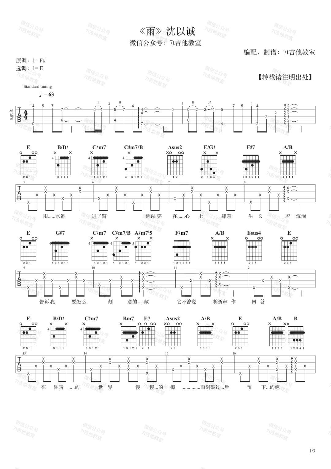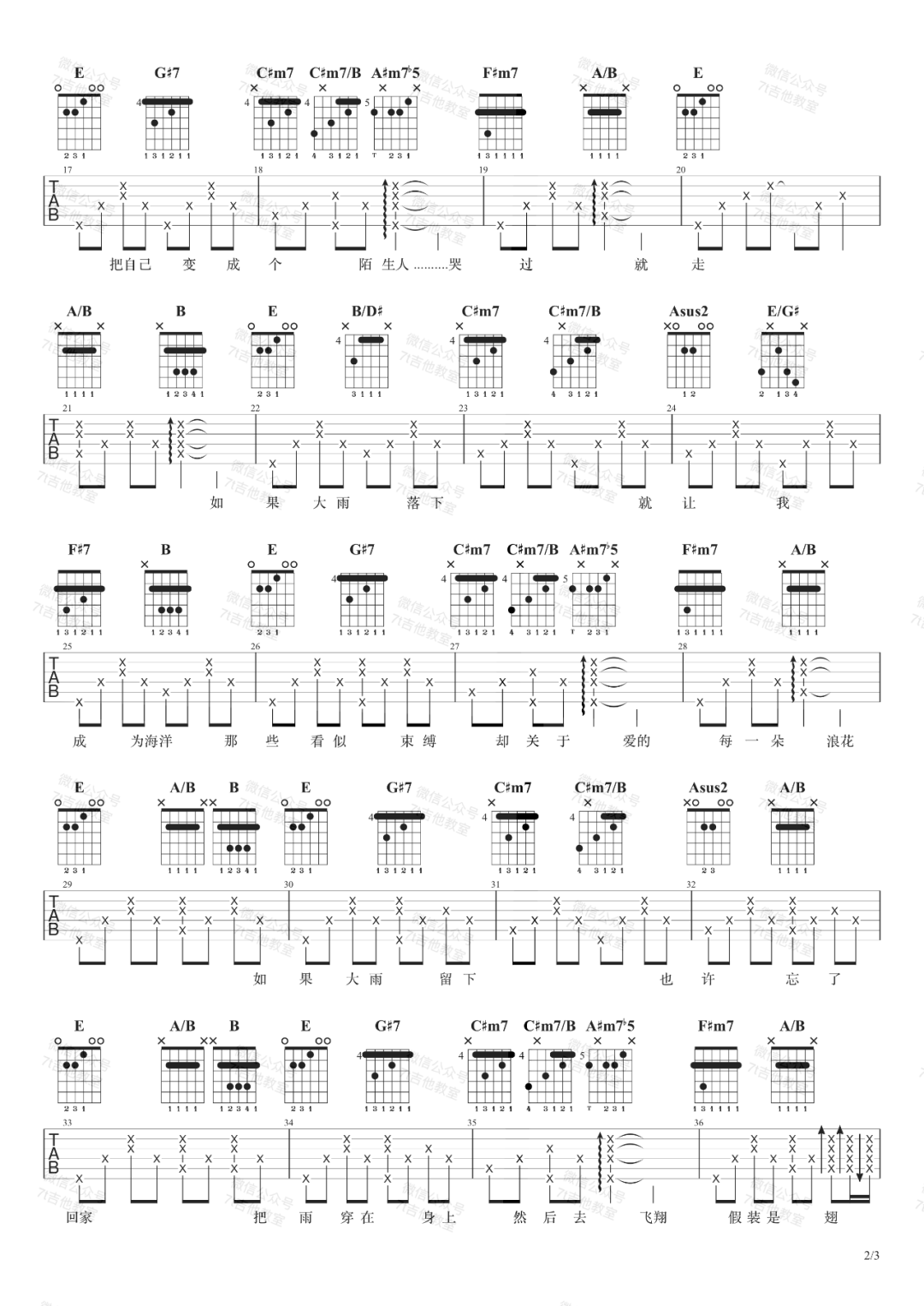 > 雨 E调指法原版编配