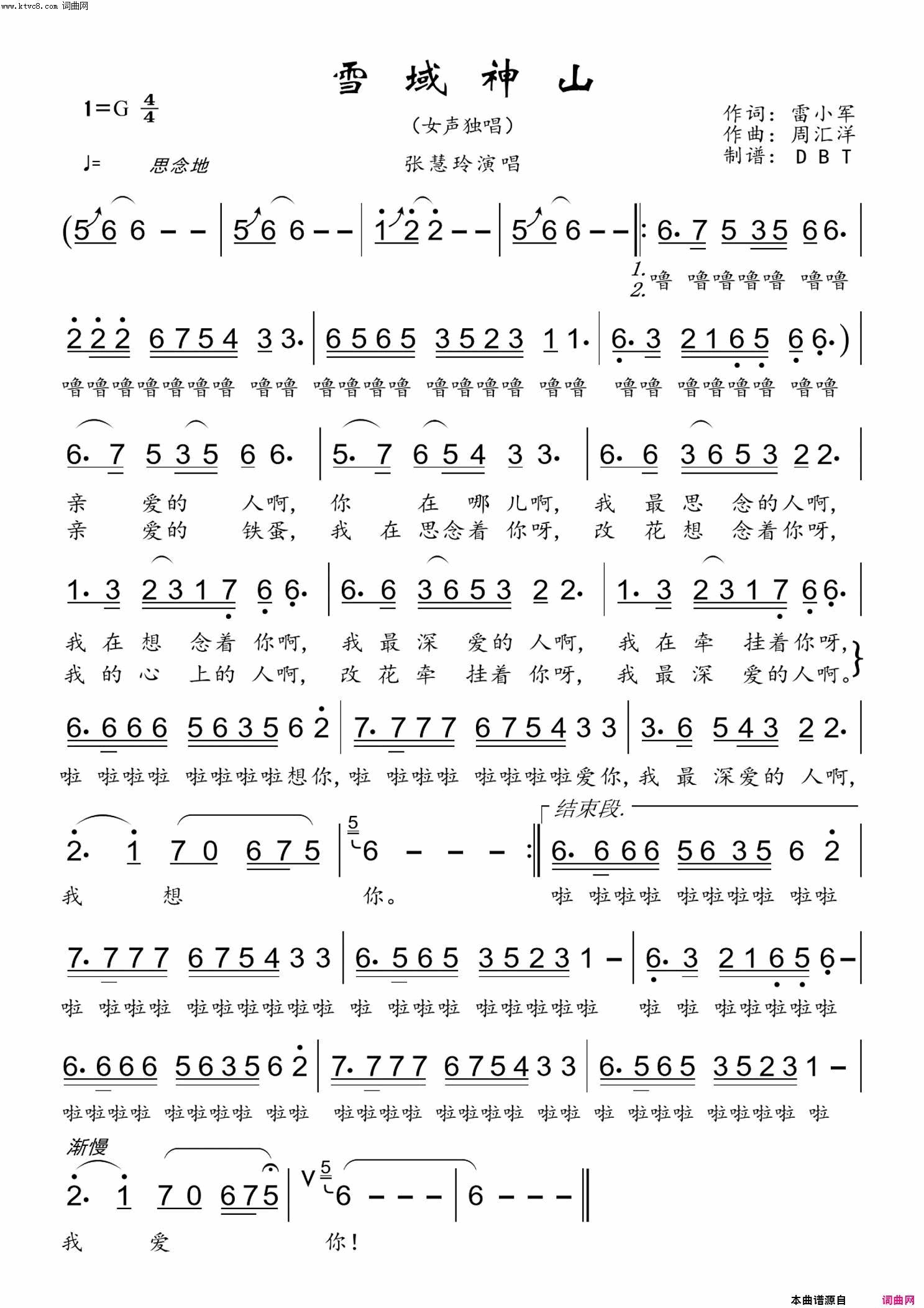 雪域神山F调伴奏