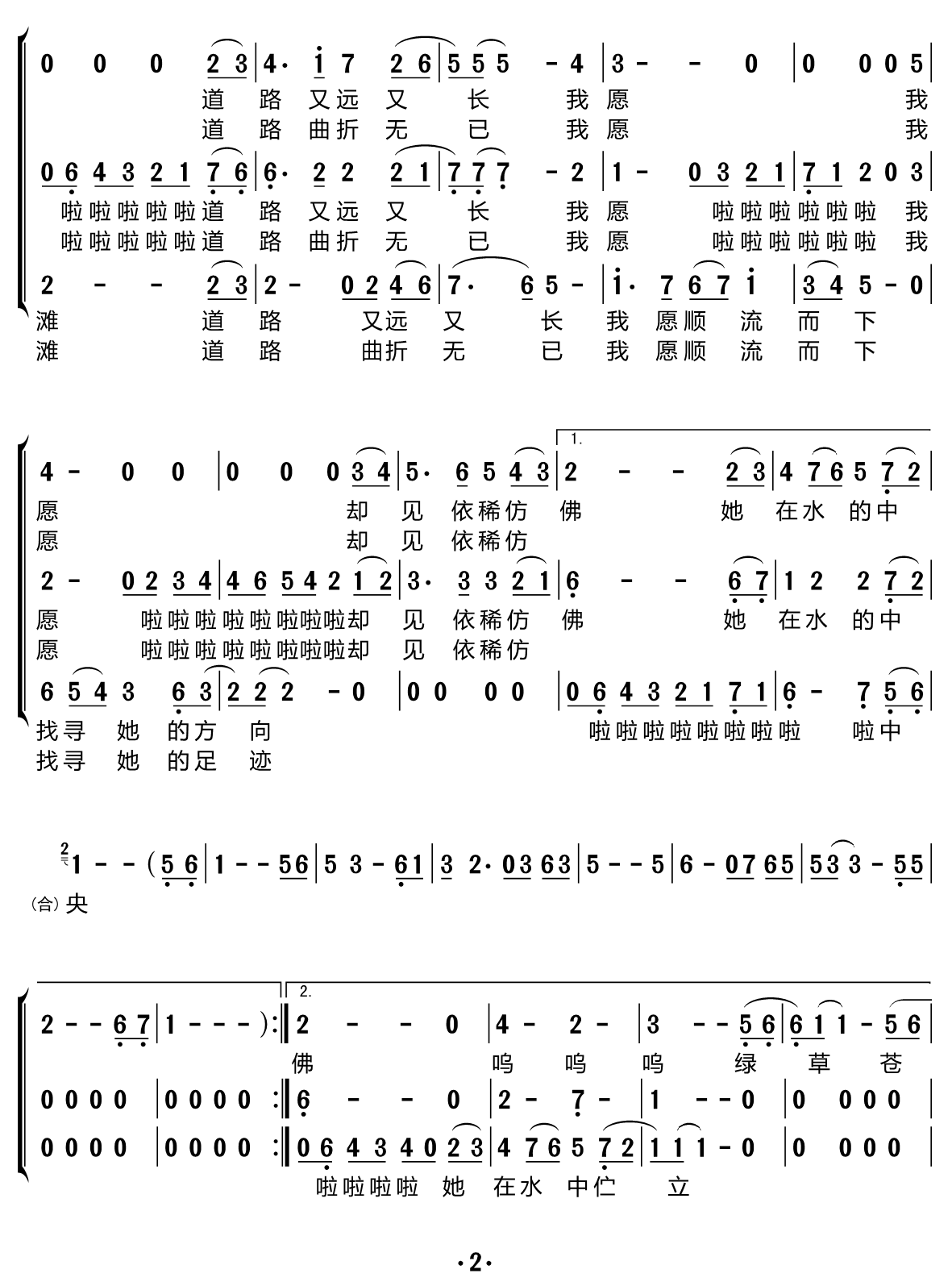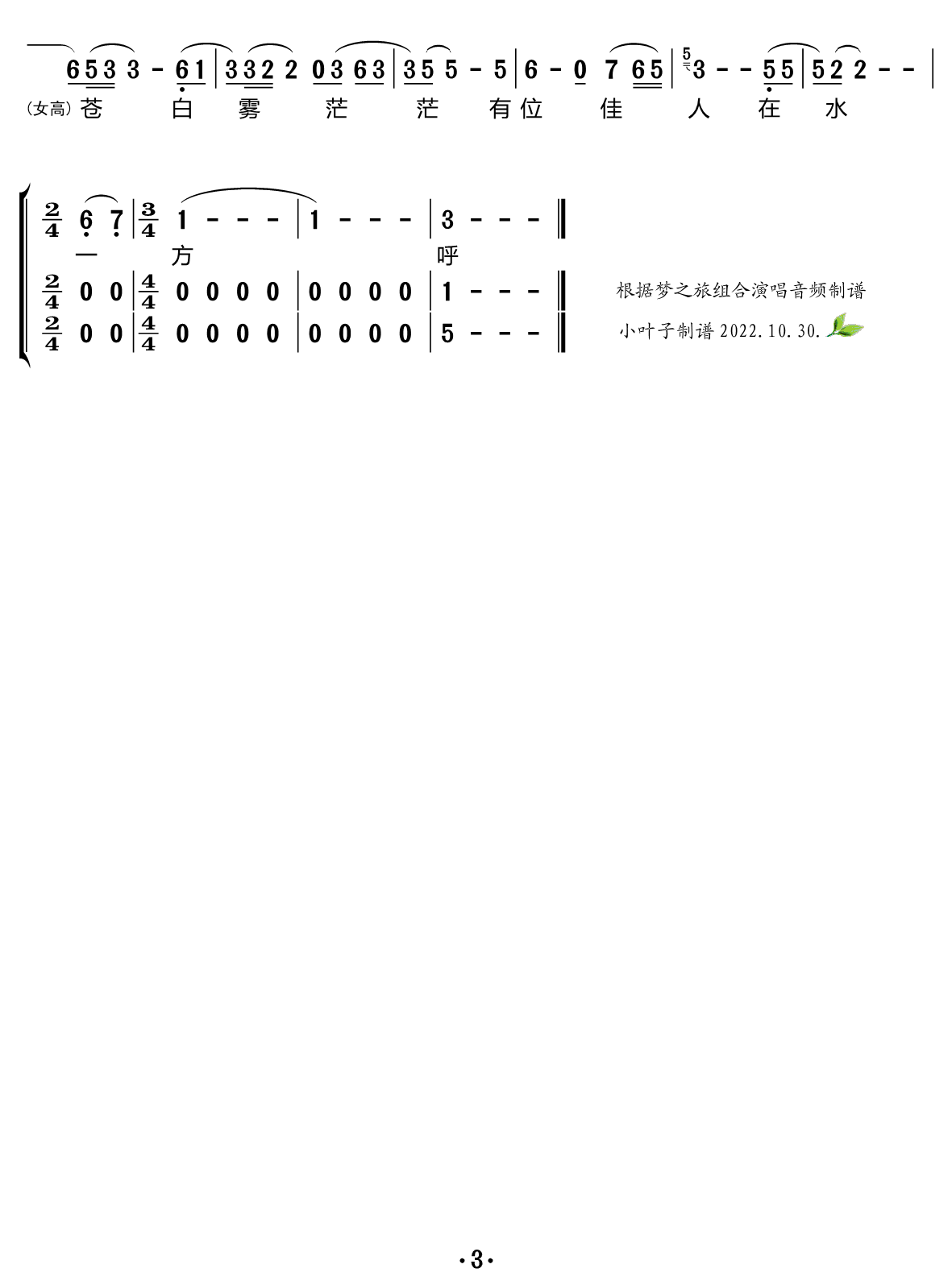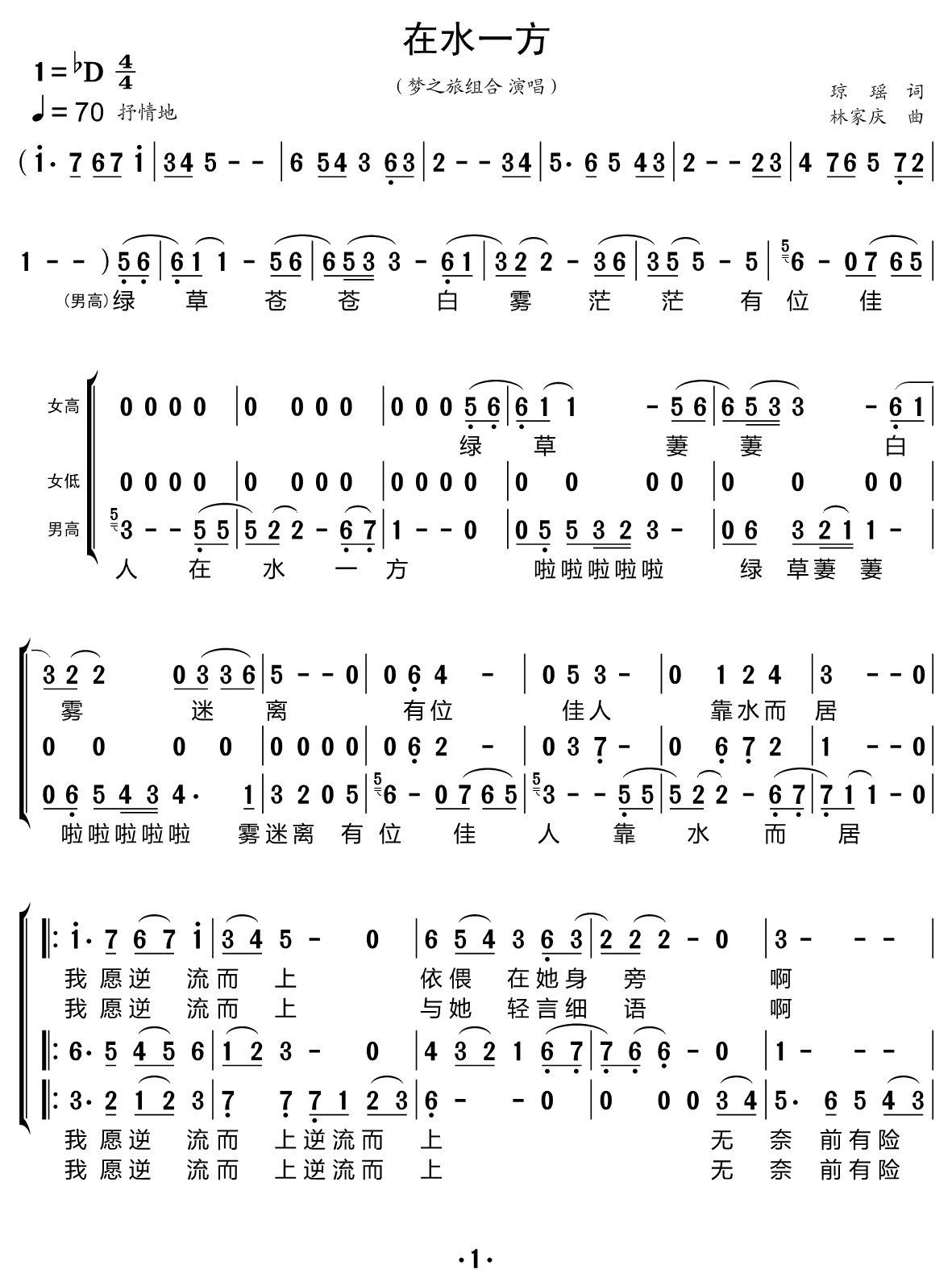 > 在水一方 合唱谱