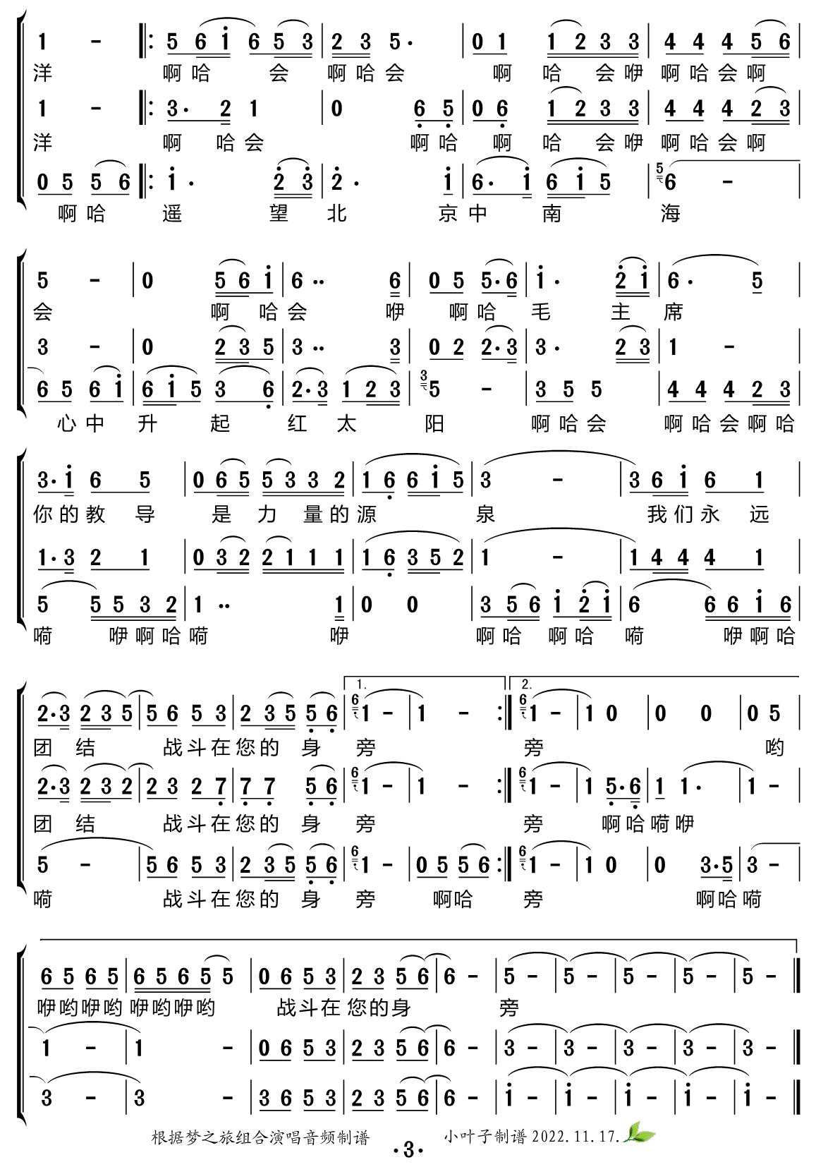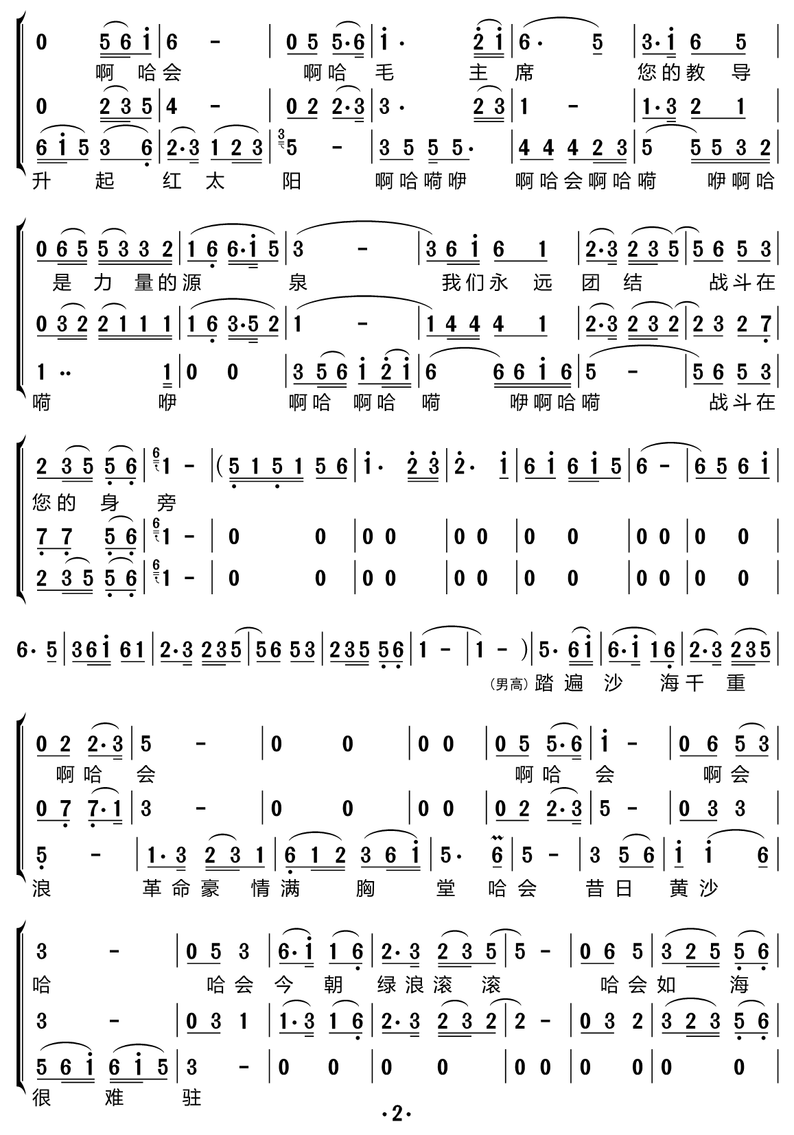> 金色的沙漠上 合唱谱
