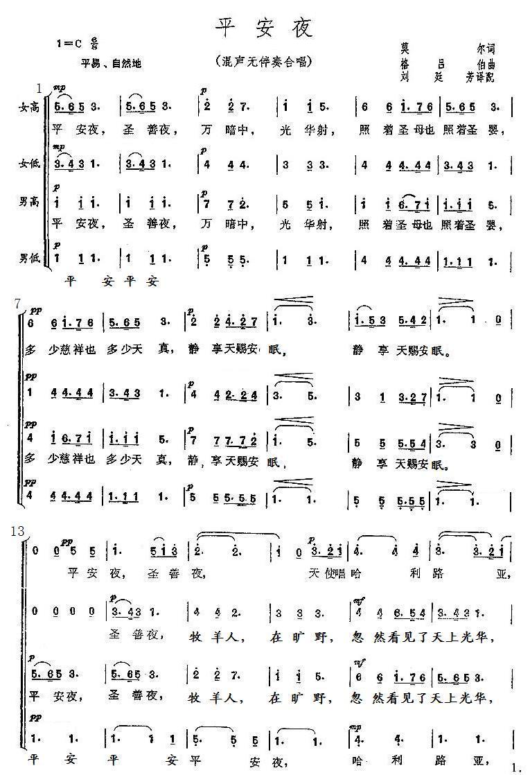 > 平安夜 无伴奏合唱