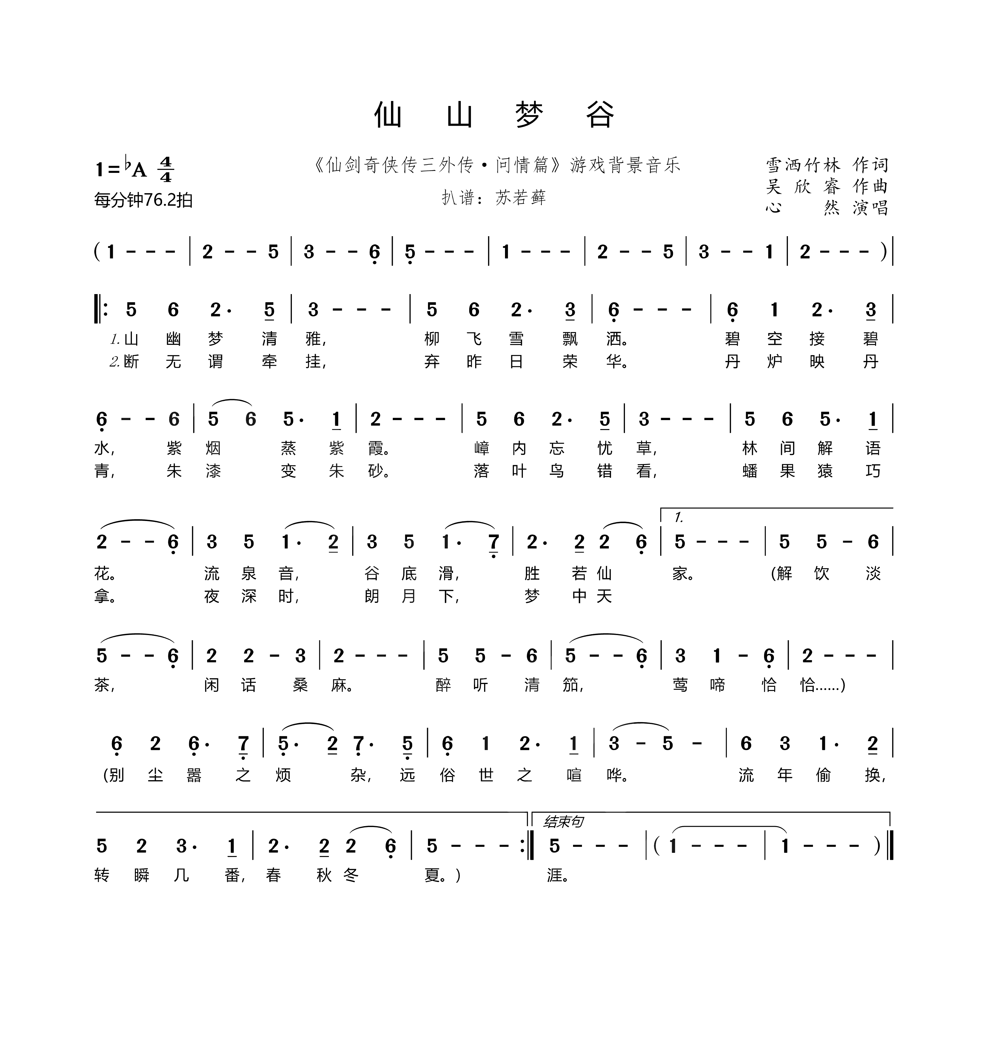 仙山梦谷 仙剑奇侠传三外传 问情篇 游戏背景音乐