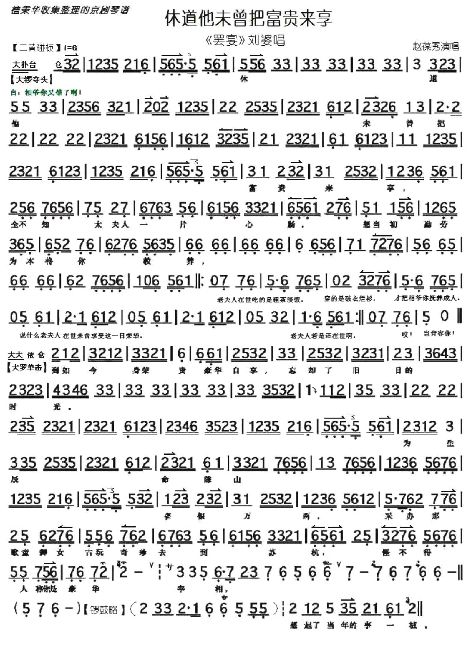 京剧 罢宴 休道他未曾把富贵来享 京胡伴奏谱