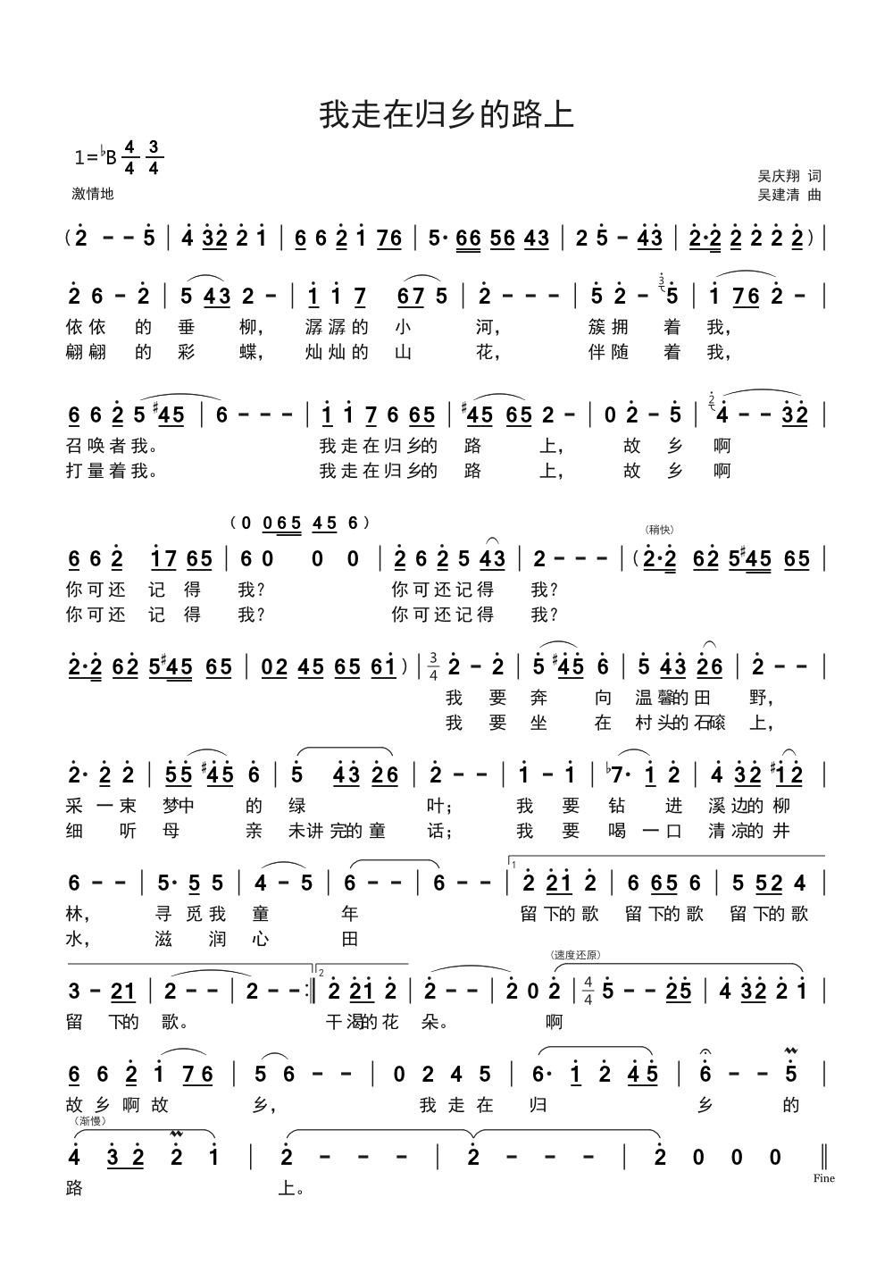 我走在归乡的路上 男声独唱