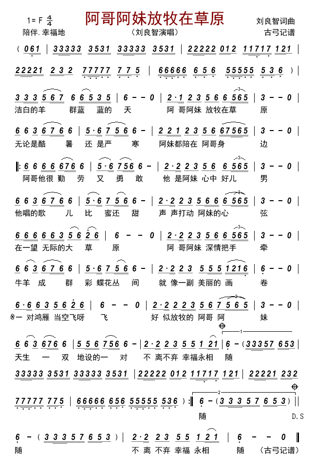 > 阿哥阿妹放牧在草原
