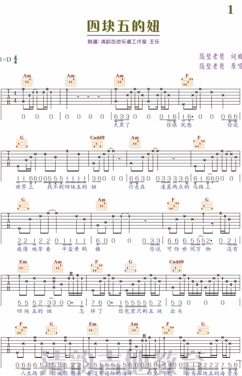 四块五 C调指法简单版编配