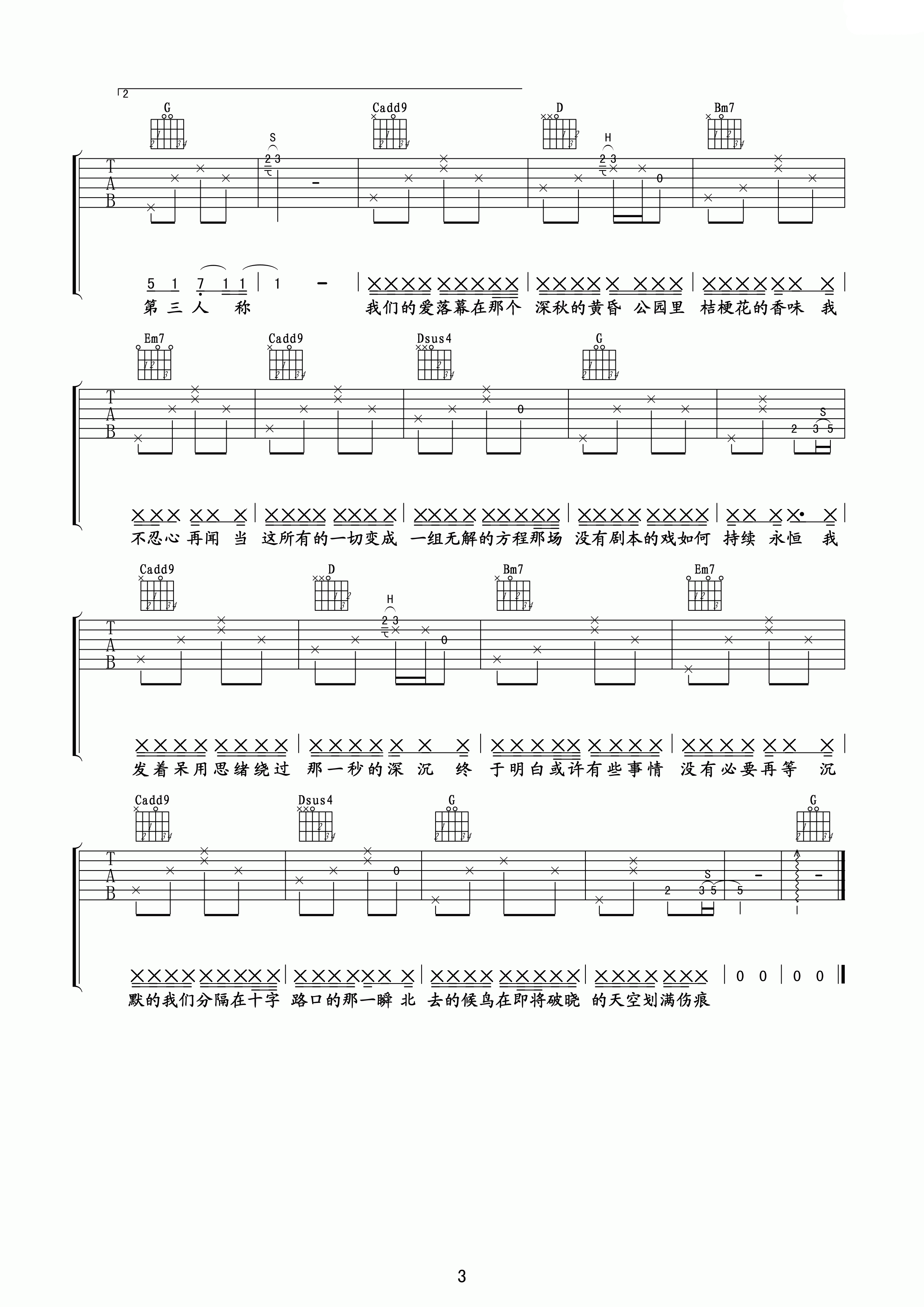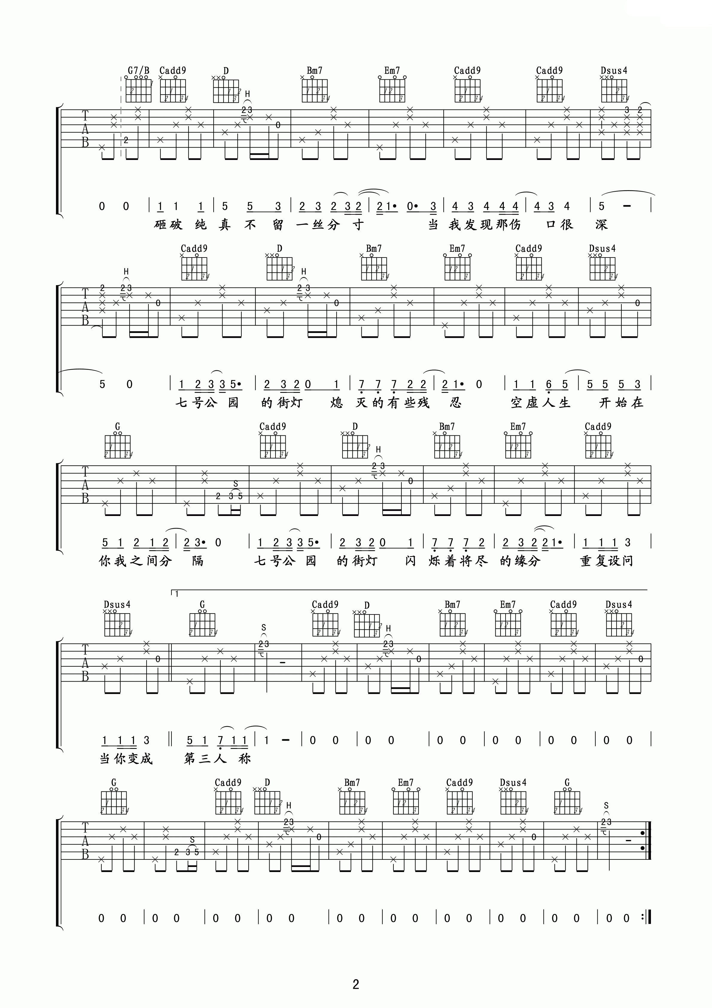 > 七号公园 G调指法原版编配