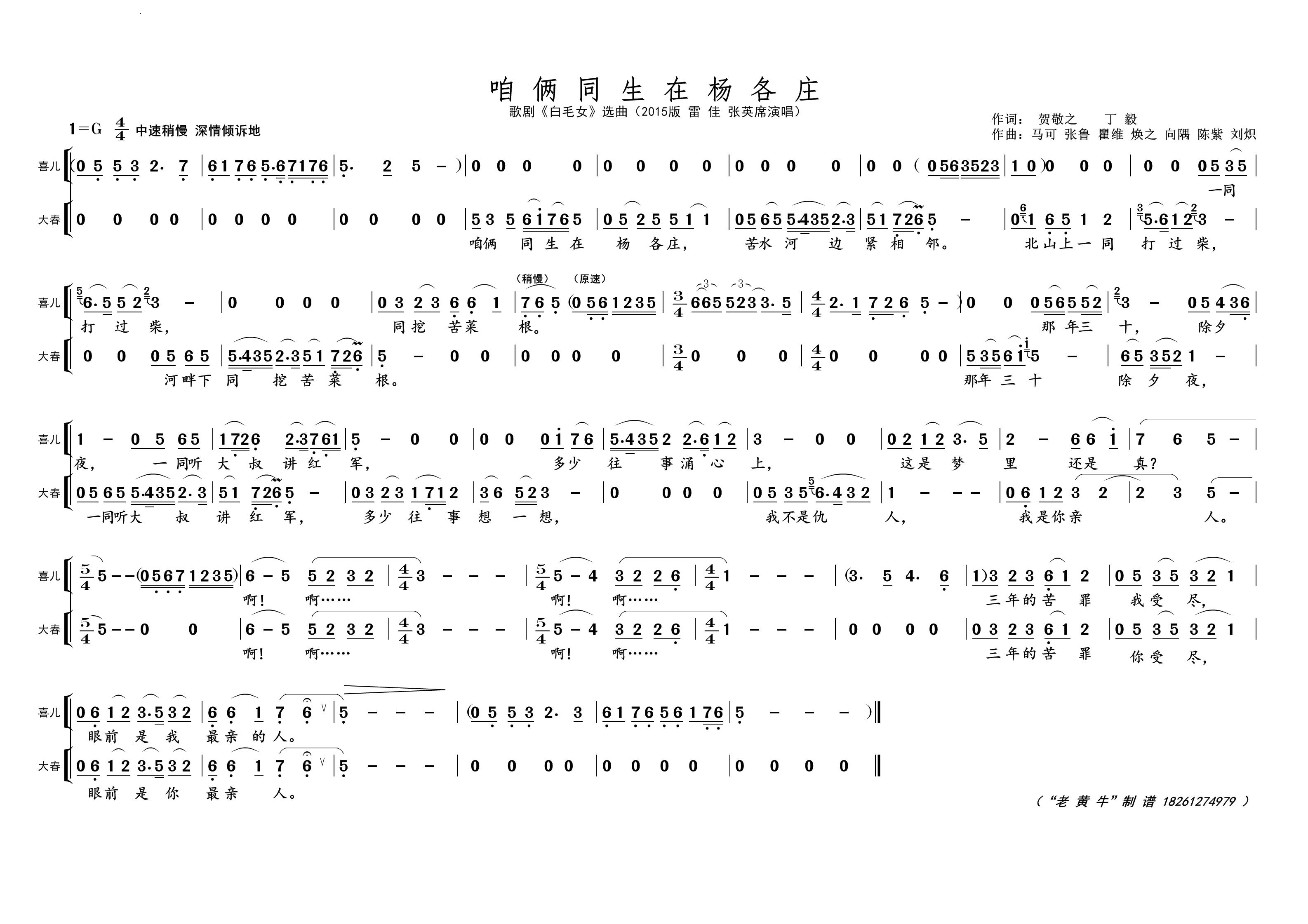 咱俩同生在杨各庄歌剧 白毛女 选曲