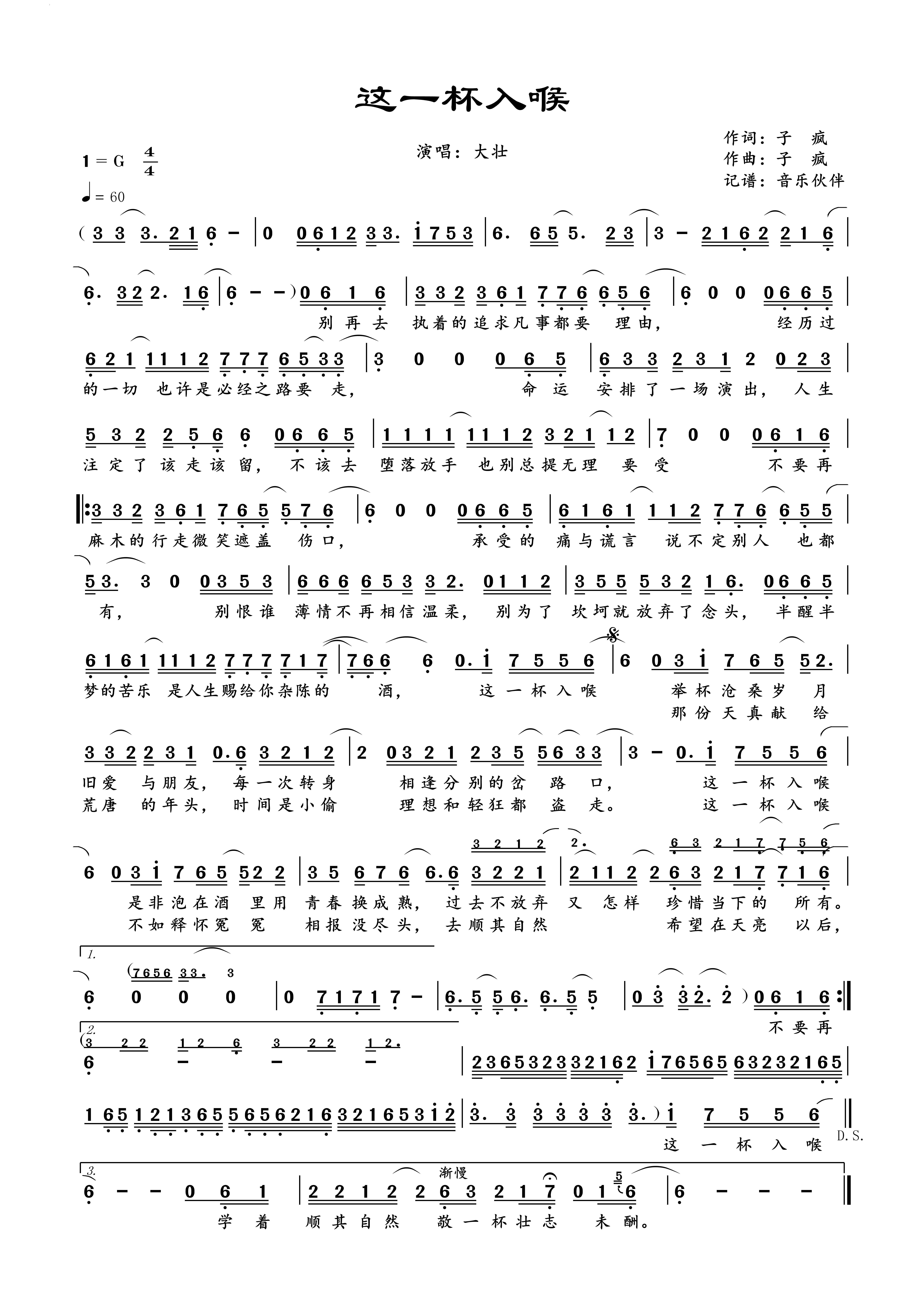 > 这一杯入喉