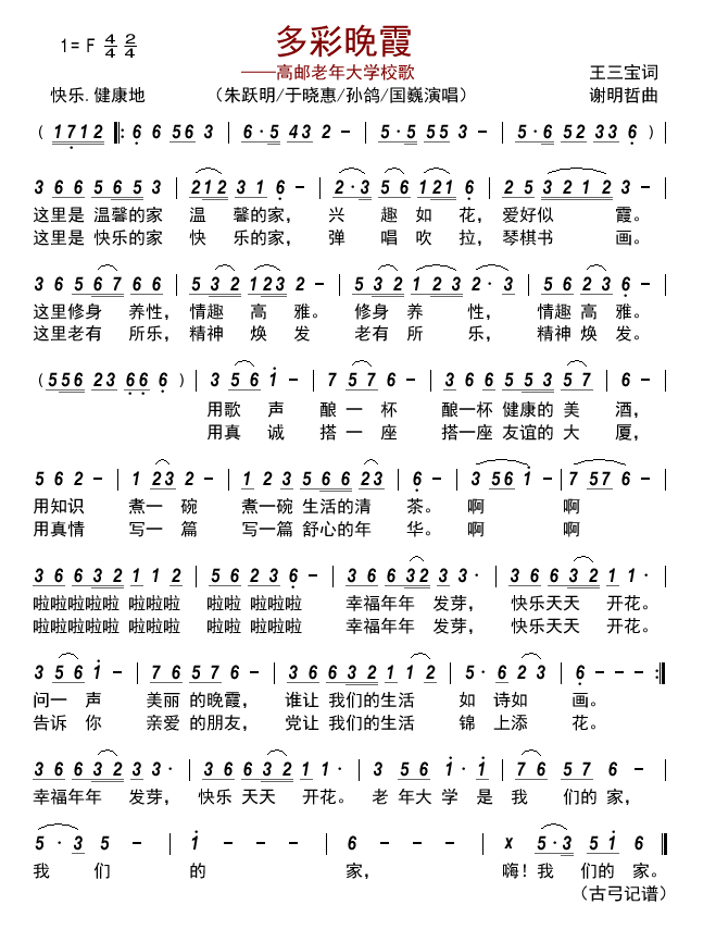 > 多彩晚霞 高邮老年大学校歌