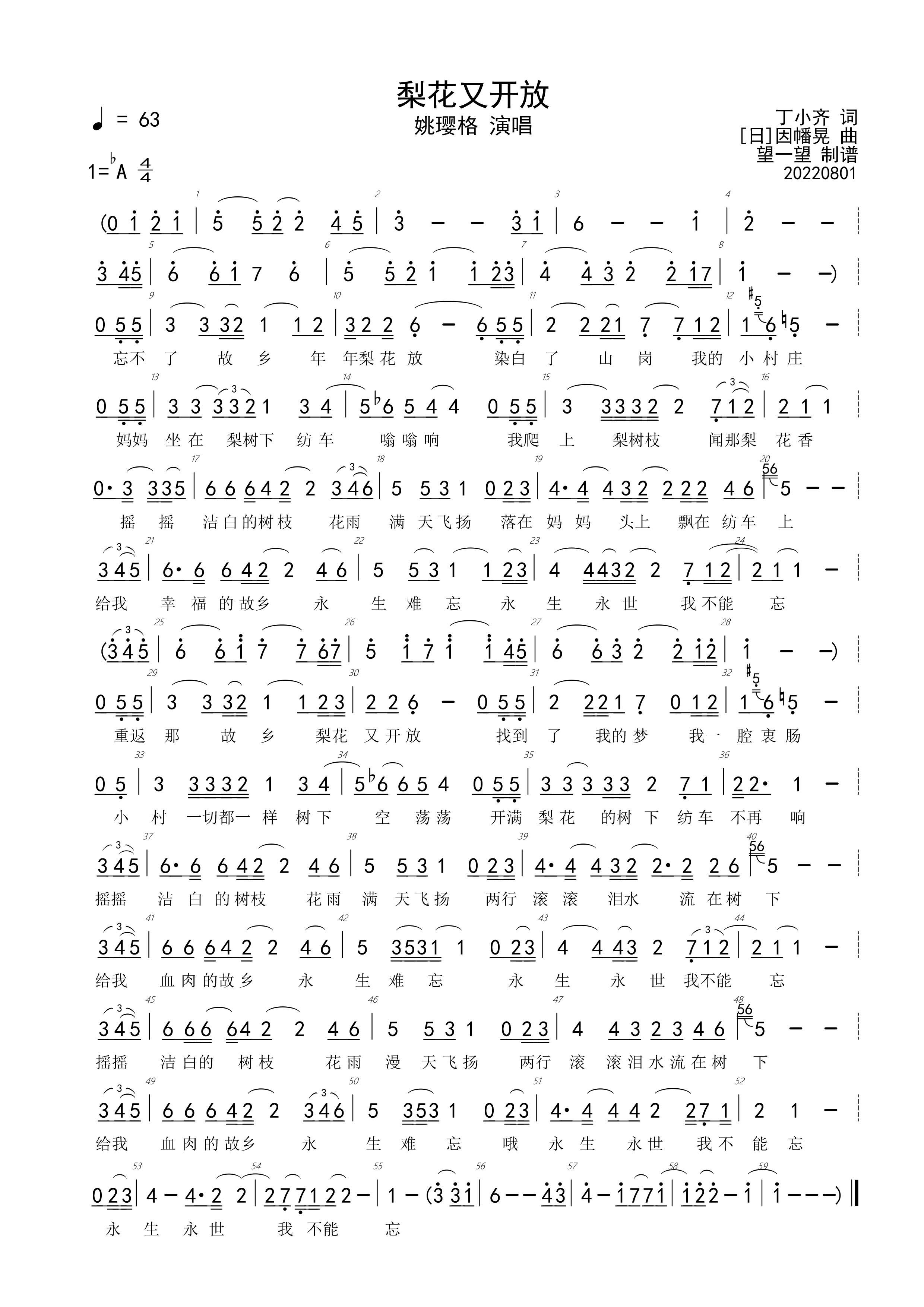 梨花又开放 Ab 首调