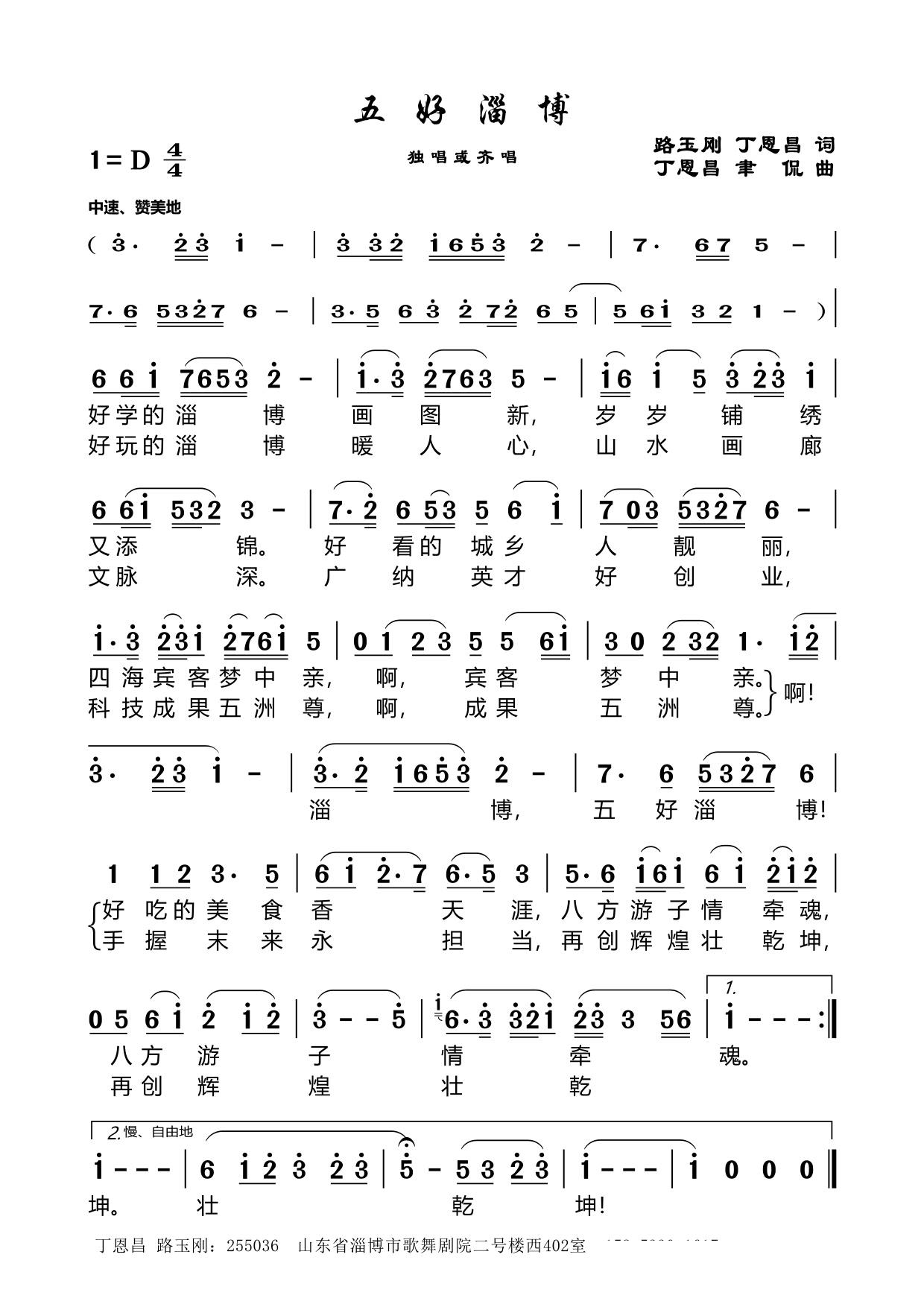 > 五好淄博 丁恩昌路玉刚词丁恩昌聿侃曲