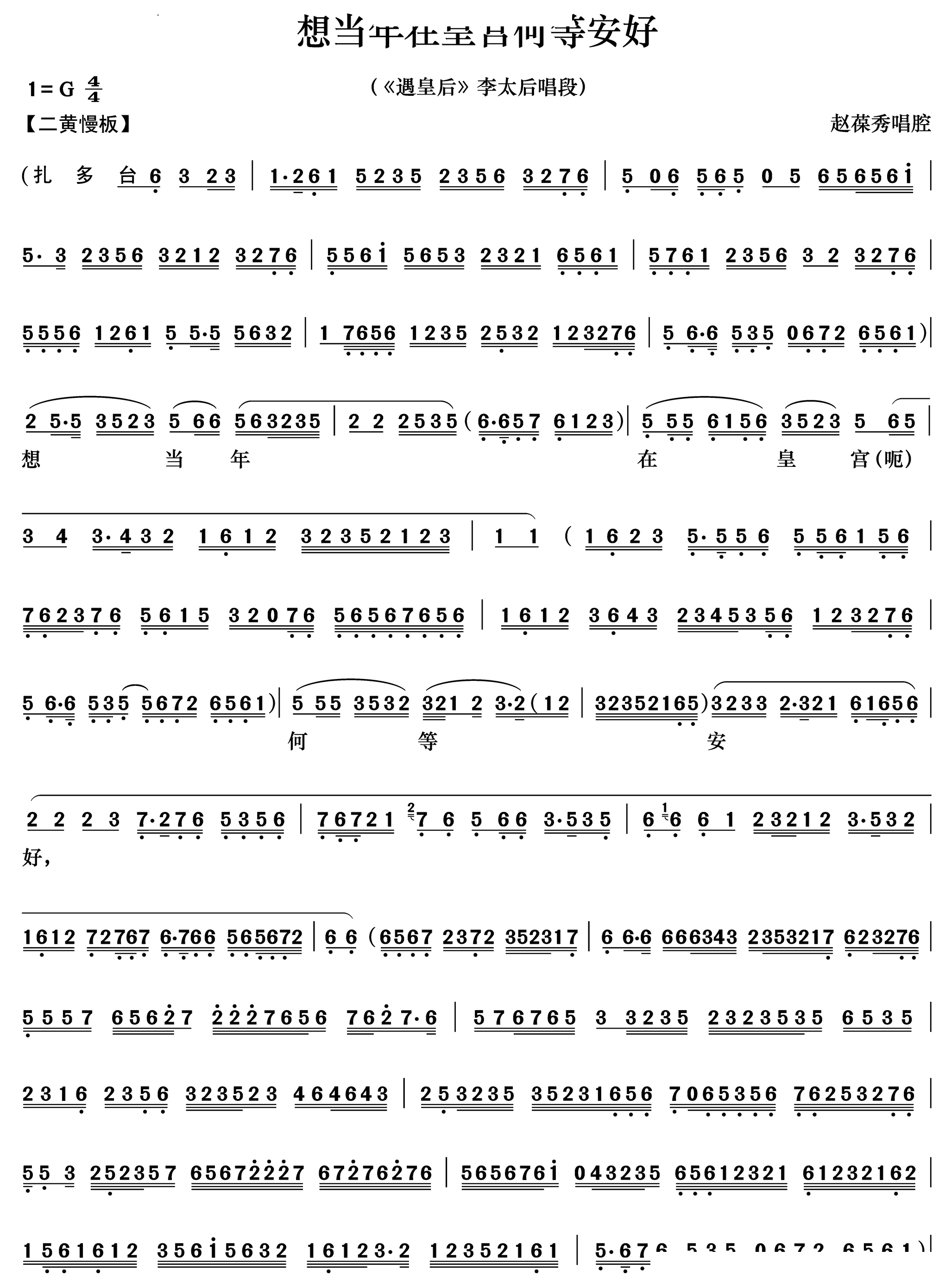 > 想当年在皇宫何等安好 遇皇后 李太后唱段