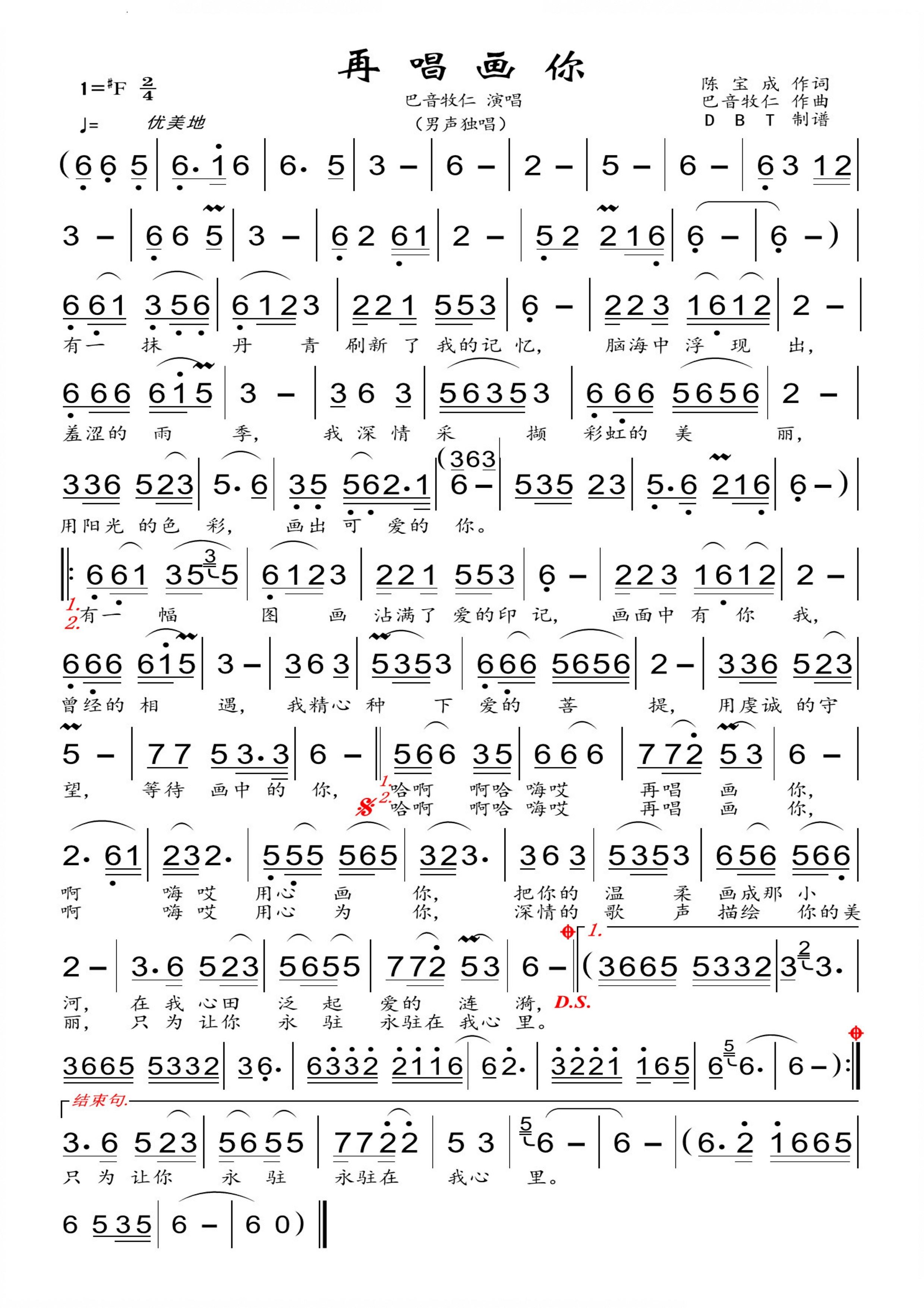 > 再唱画你男声独唱