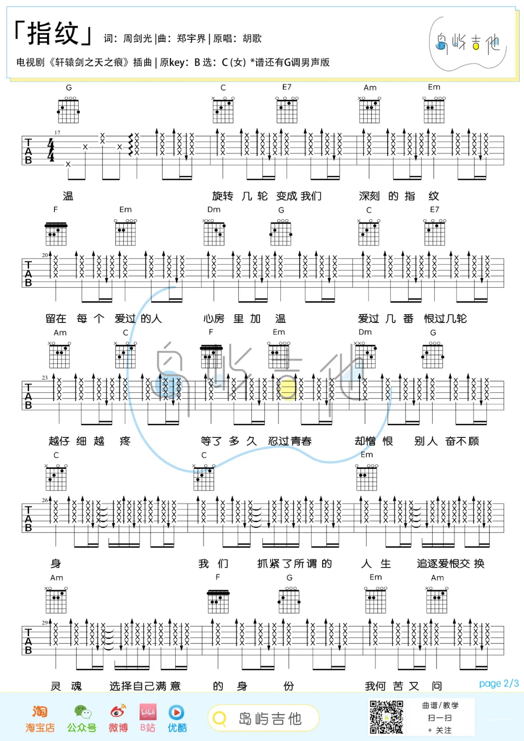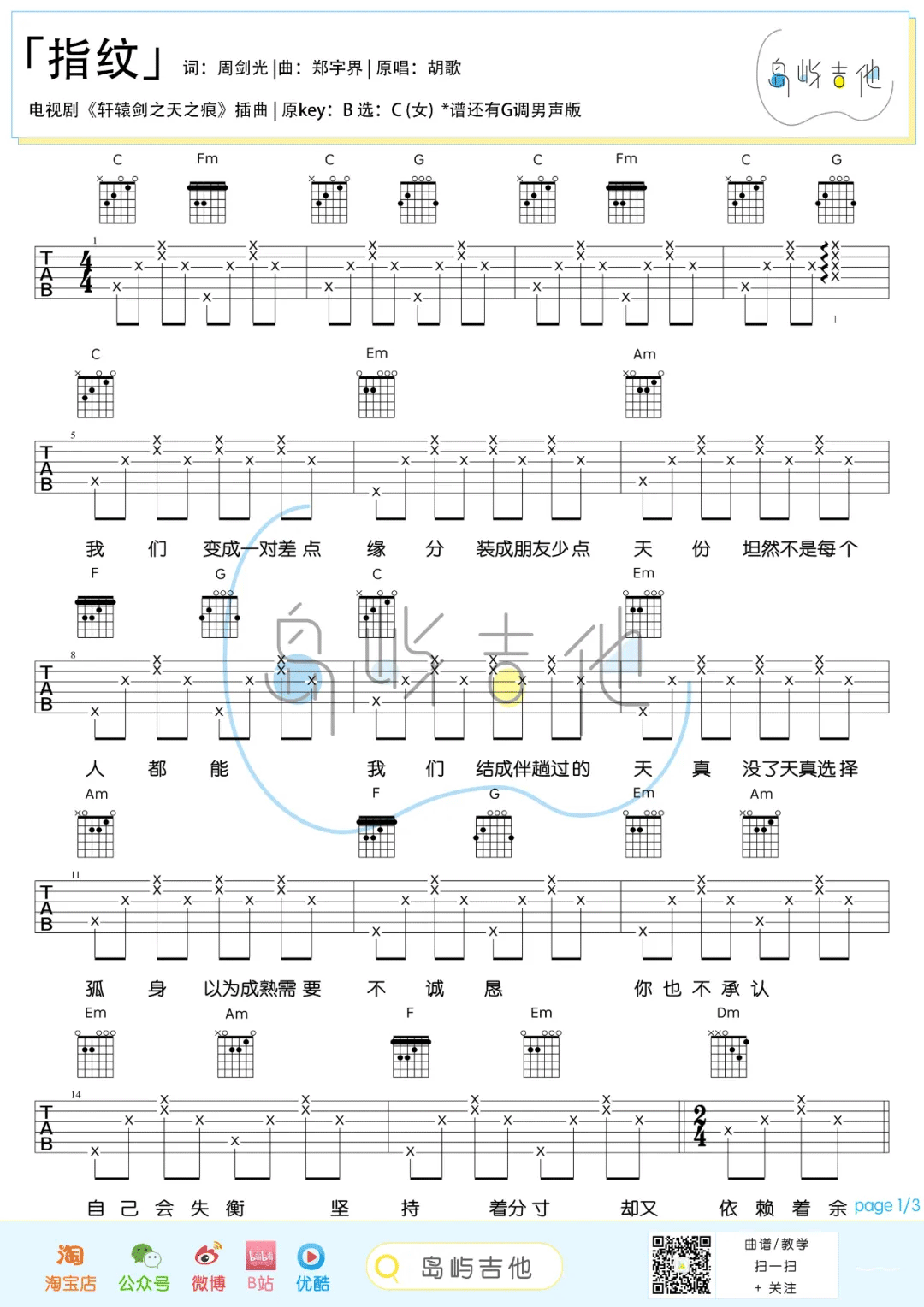 > 指纹 C调指法简单版编配