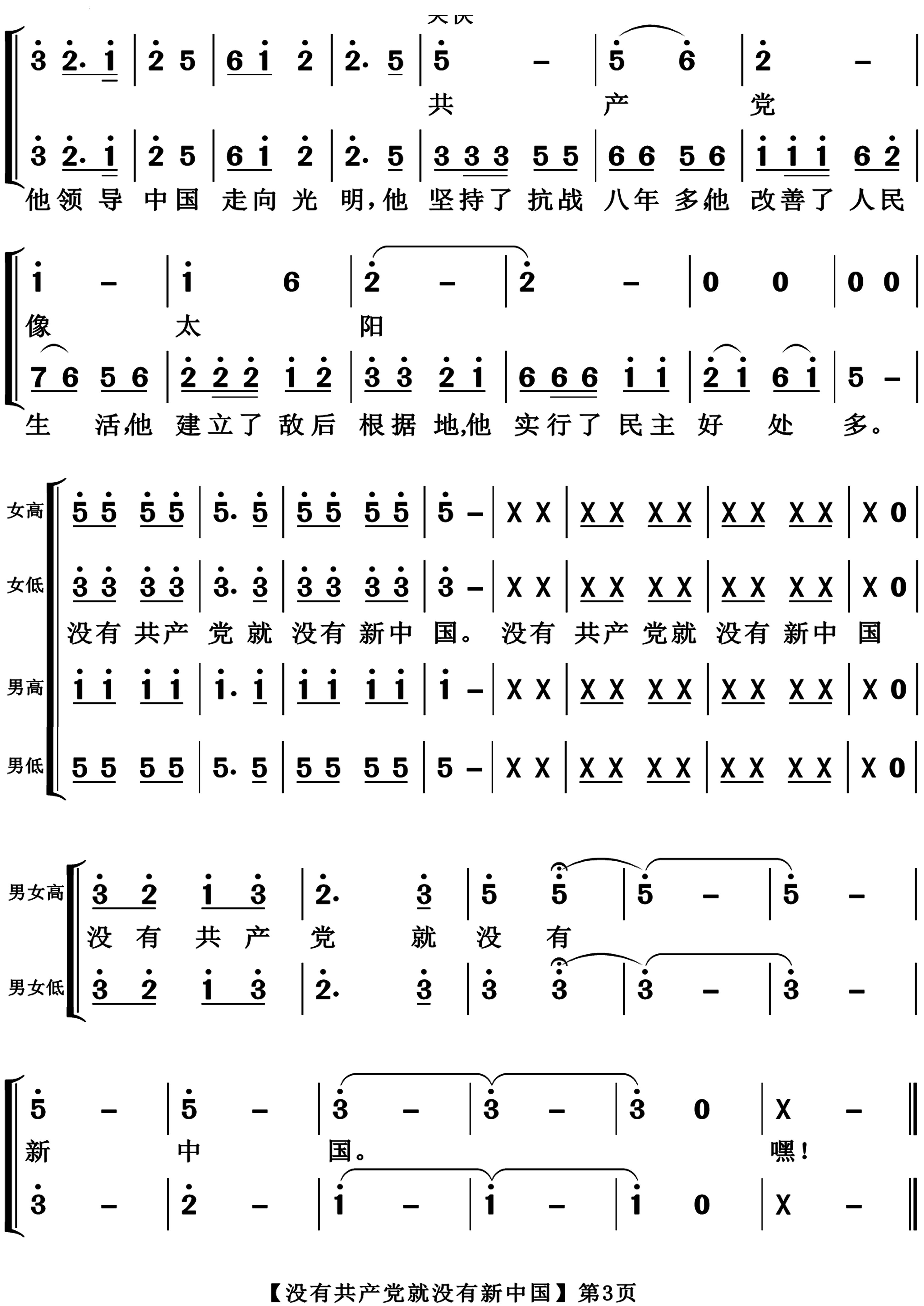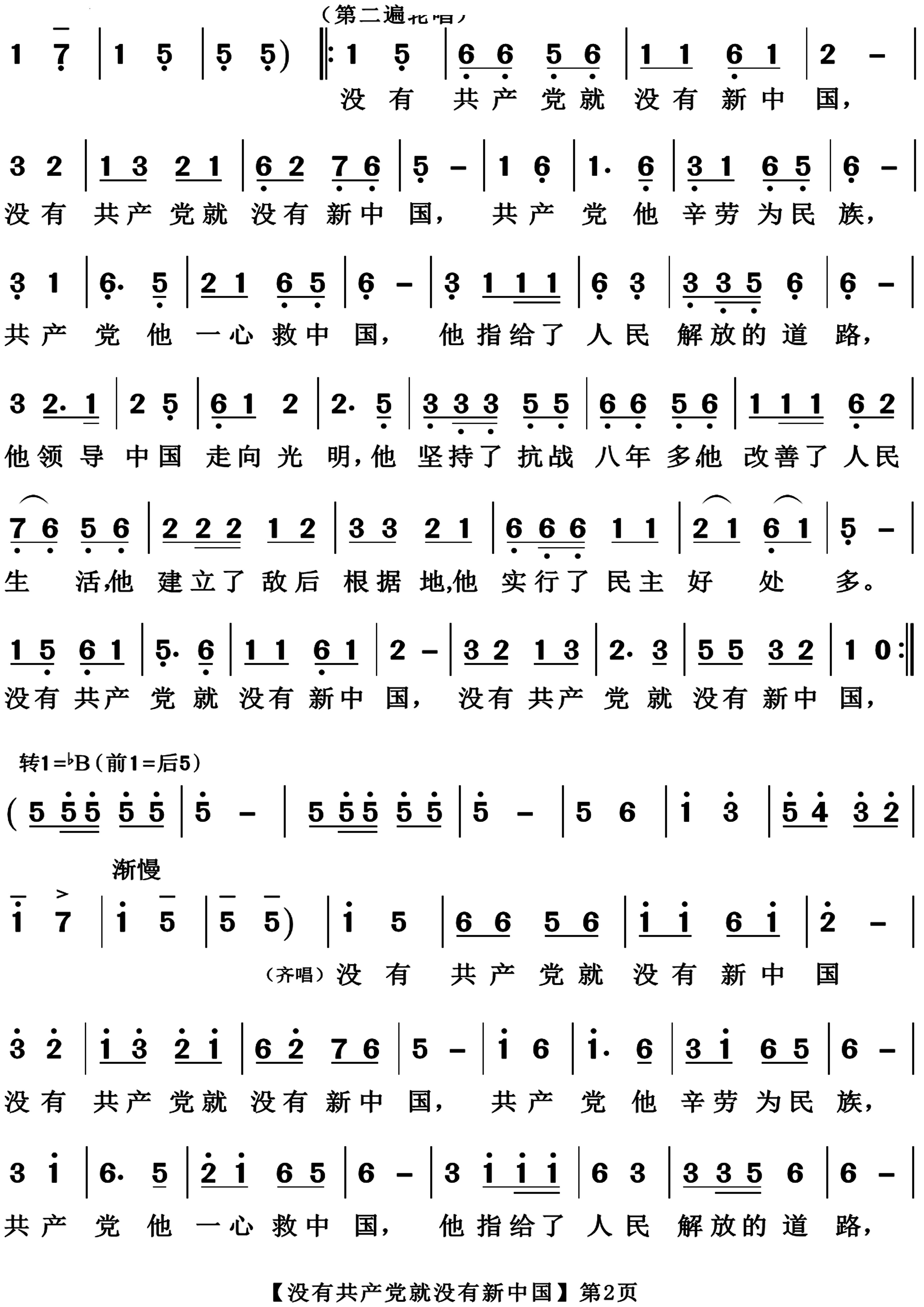 > 没有共产党就没有新中国二声部合唱