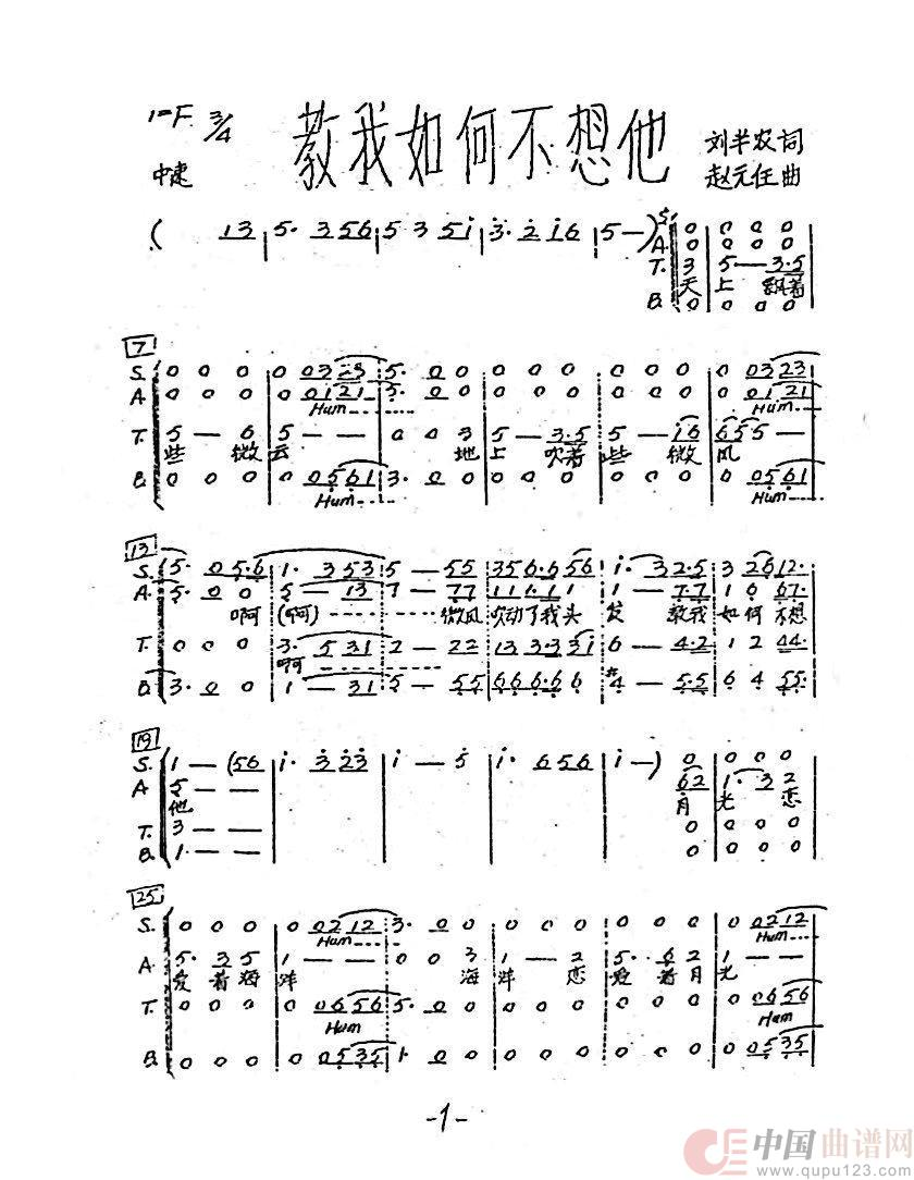 > 教我如何不想他 混声合唱