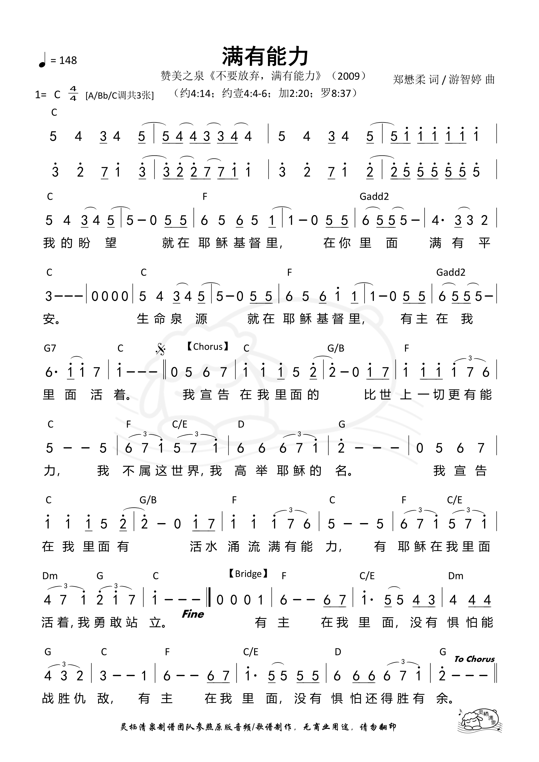 满有能力 C调