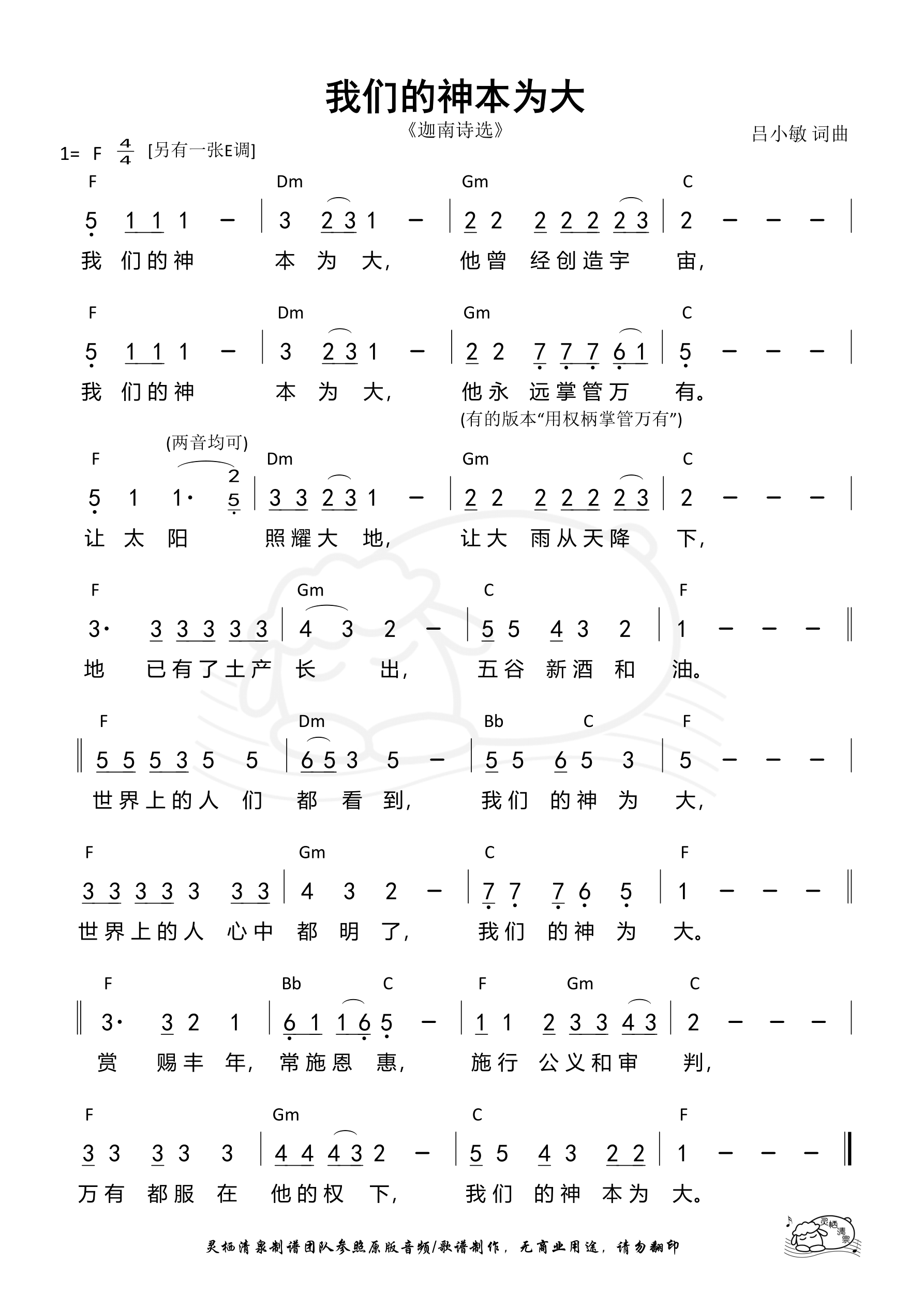 我们的神本为大 F调