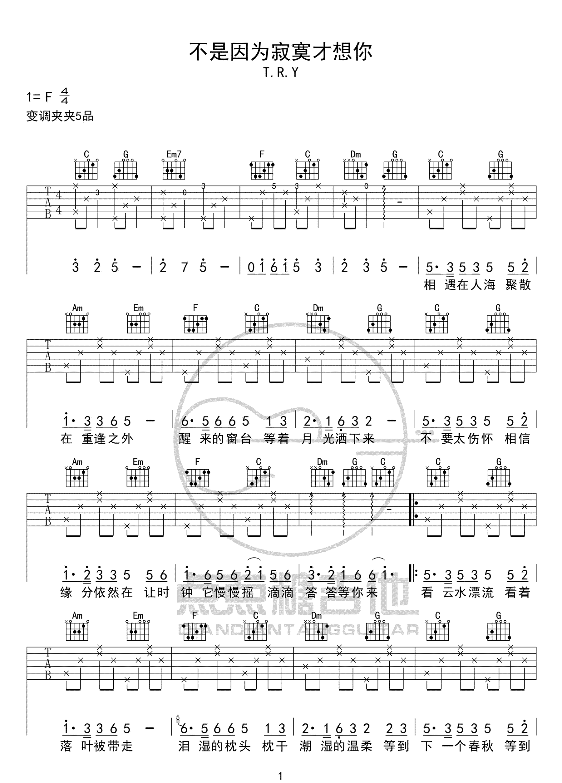 > 不是因为寂寞才想你 TRY C调原版