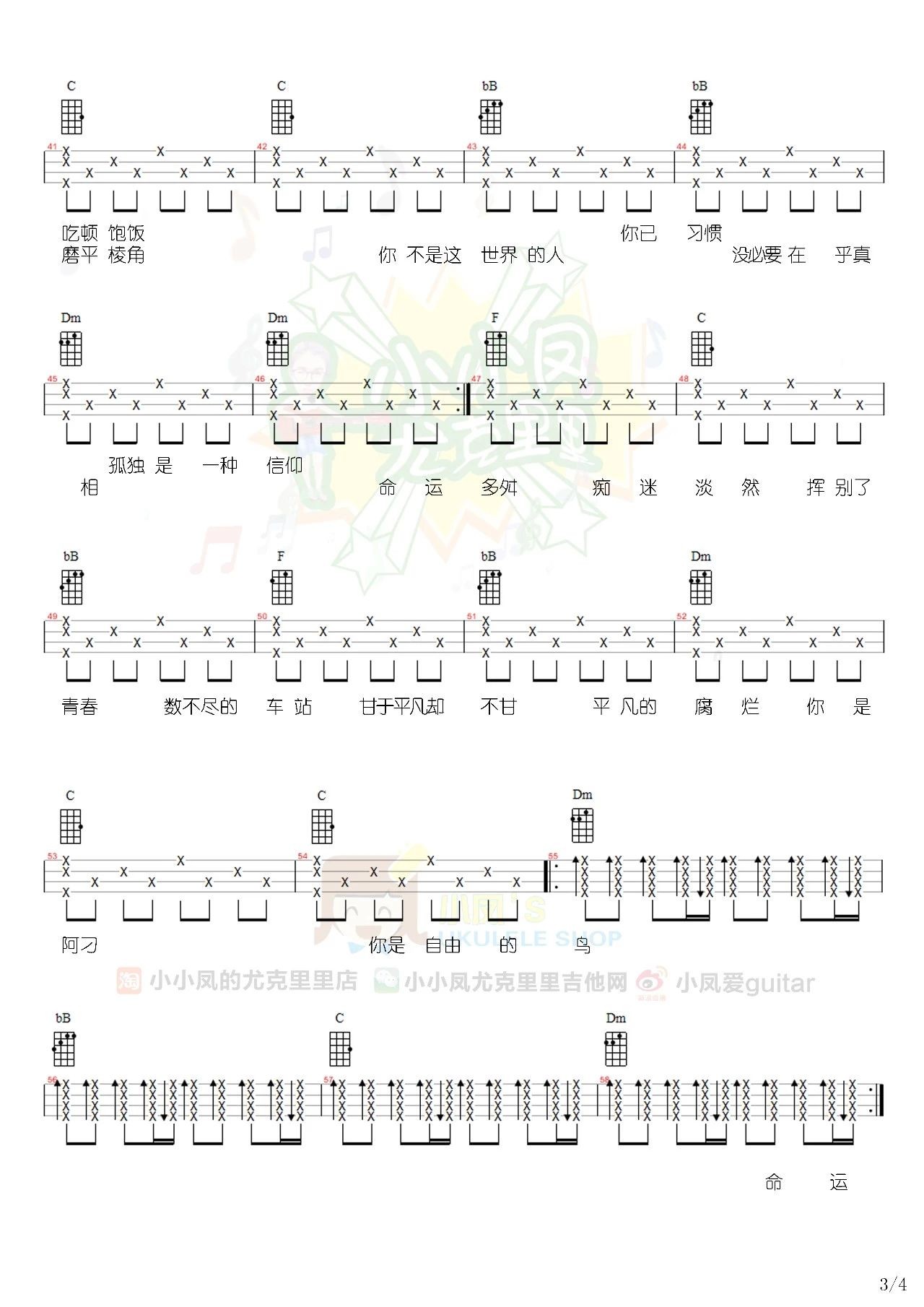> 阿刁尤克里里谱 F调四