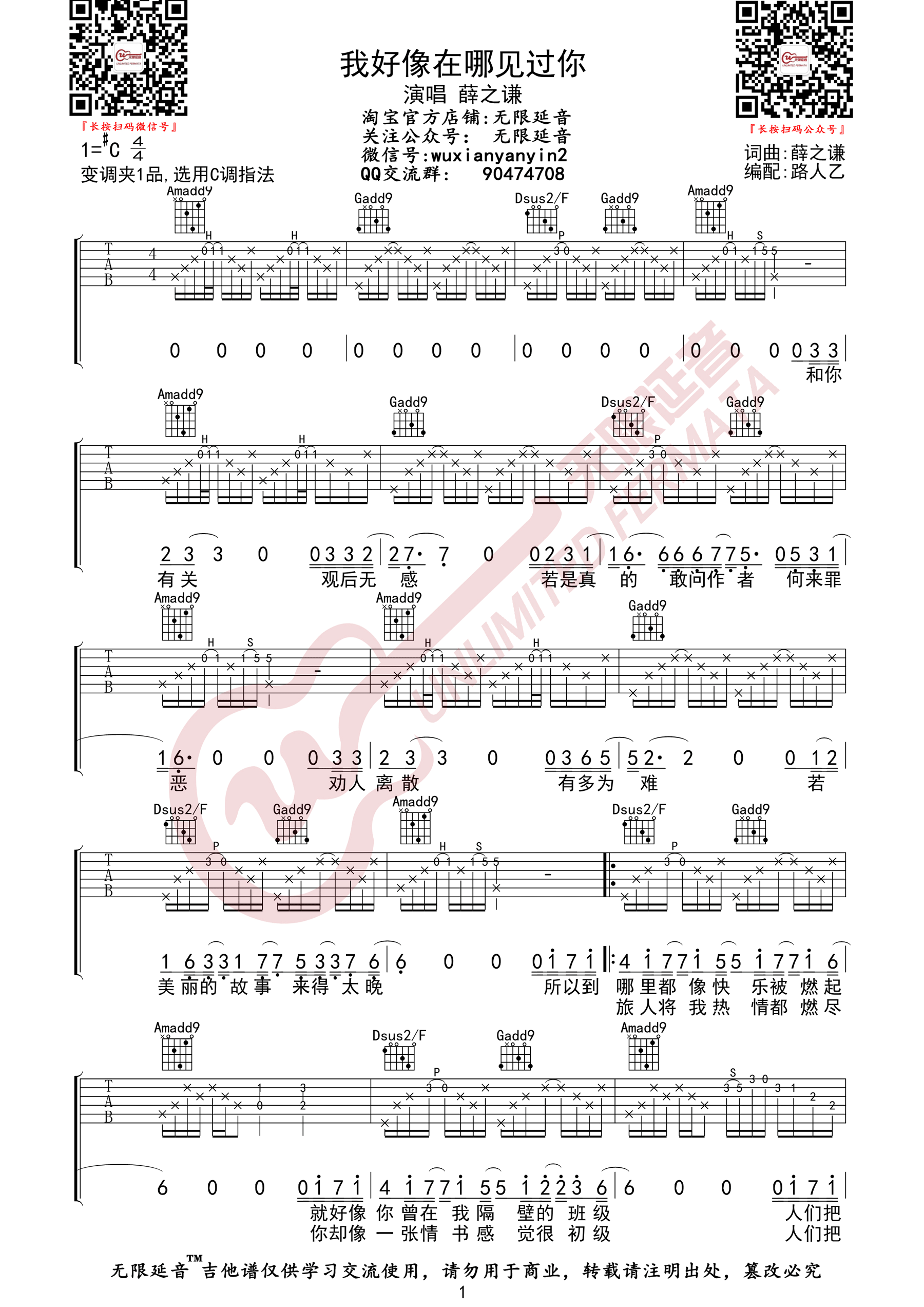 > 我好像在哪见过你 C调原版