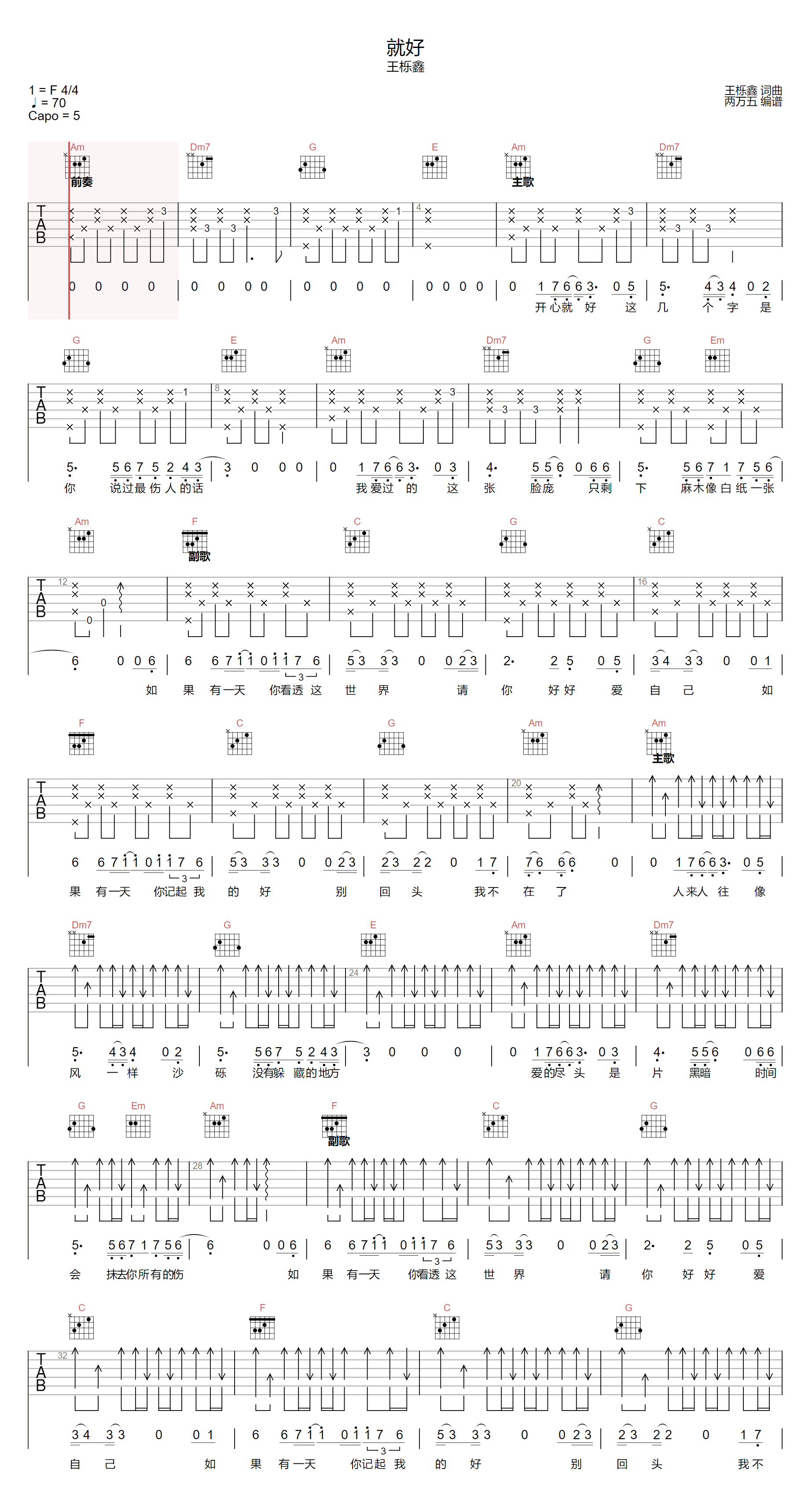 就好 C调指法原版编配