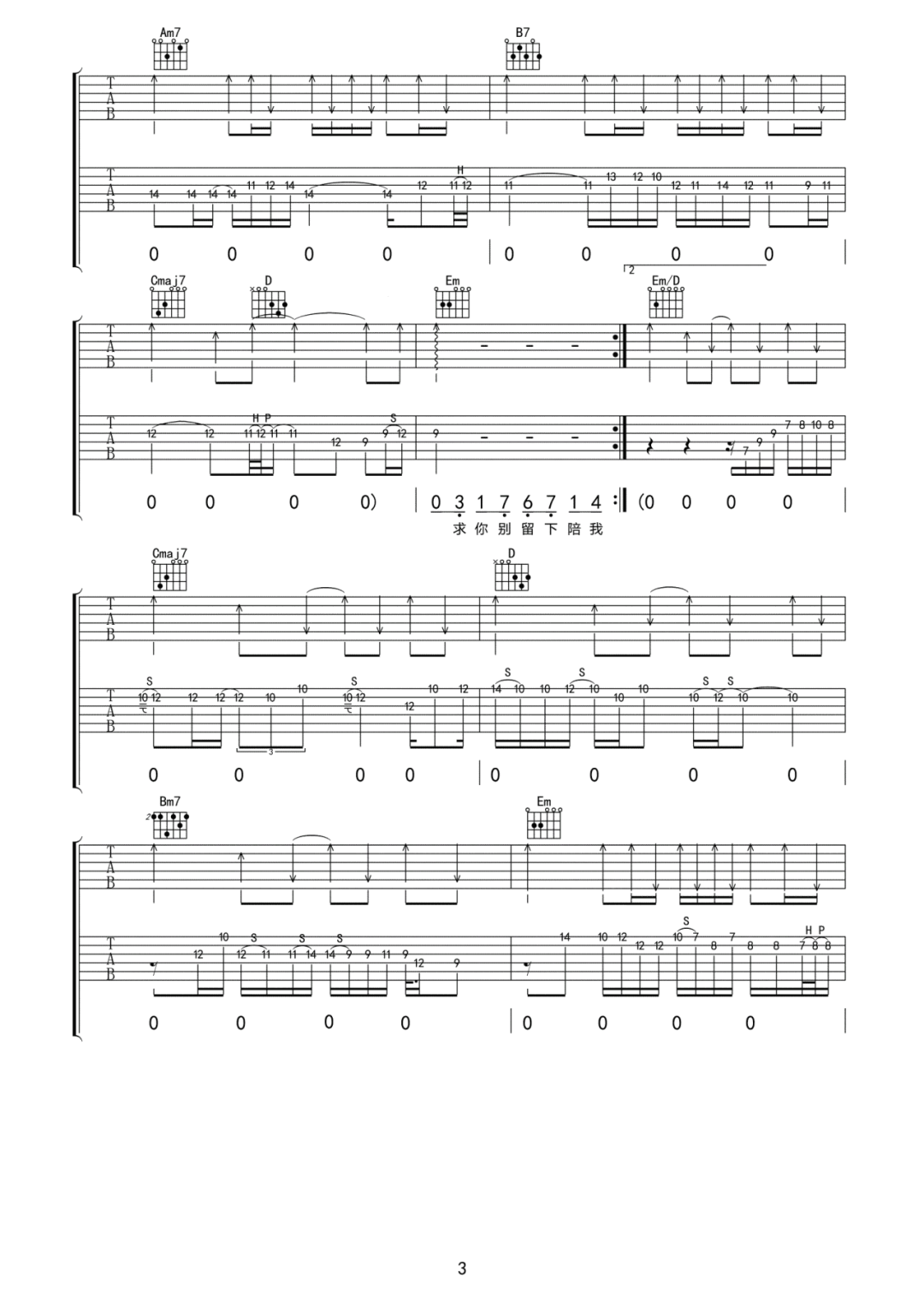 > 焚情 G调指法原版编配