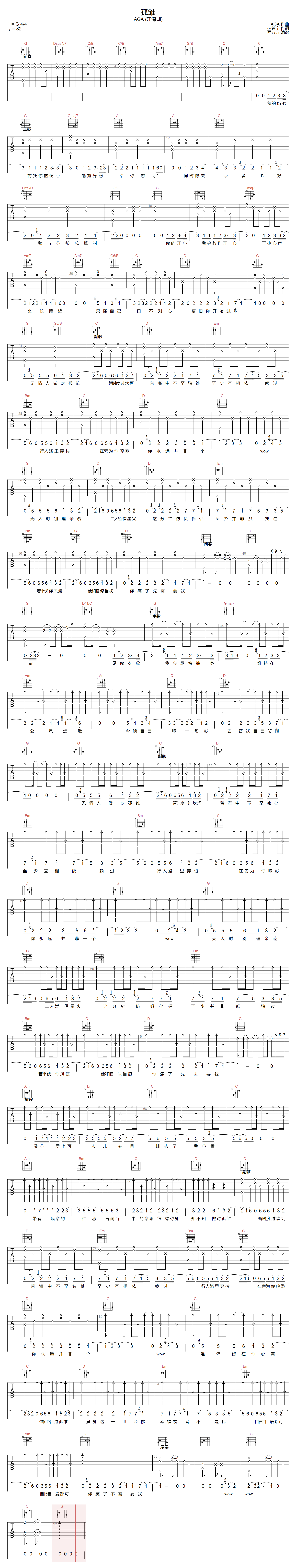 > 孤雏 G调指法原版编配