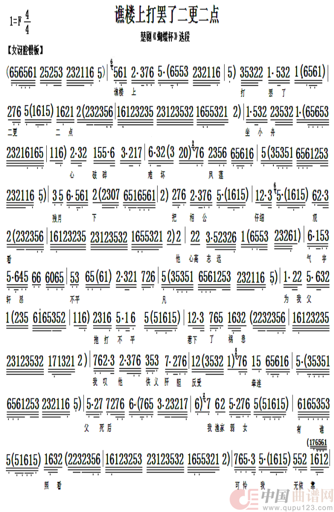 谯楼上打罢了二更二点 楚剧 蝴蝶杯 选段