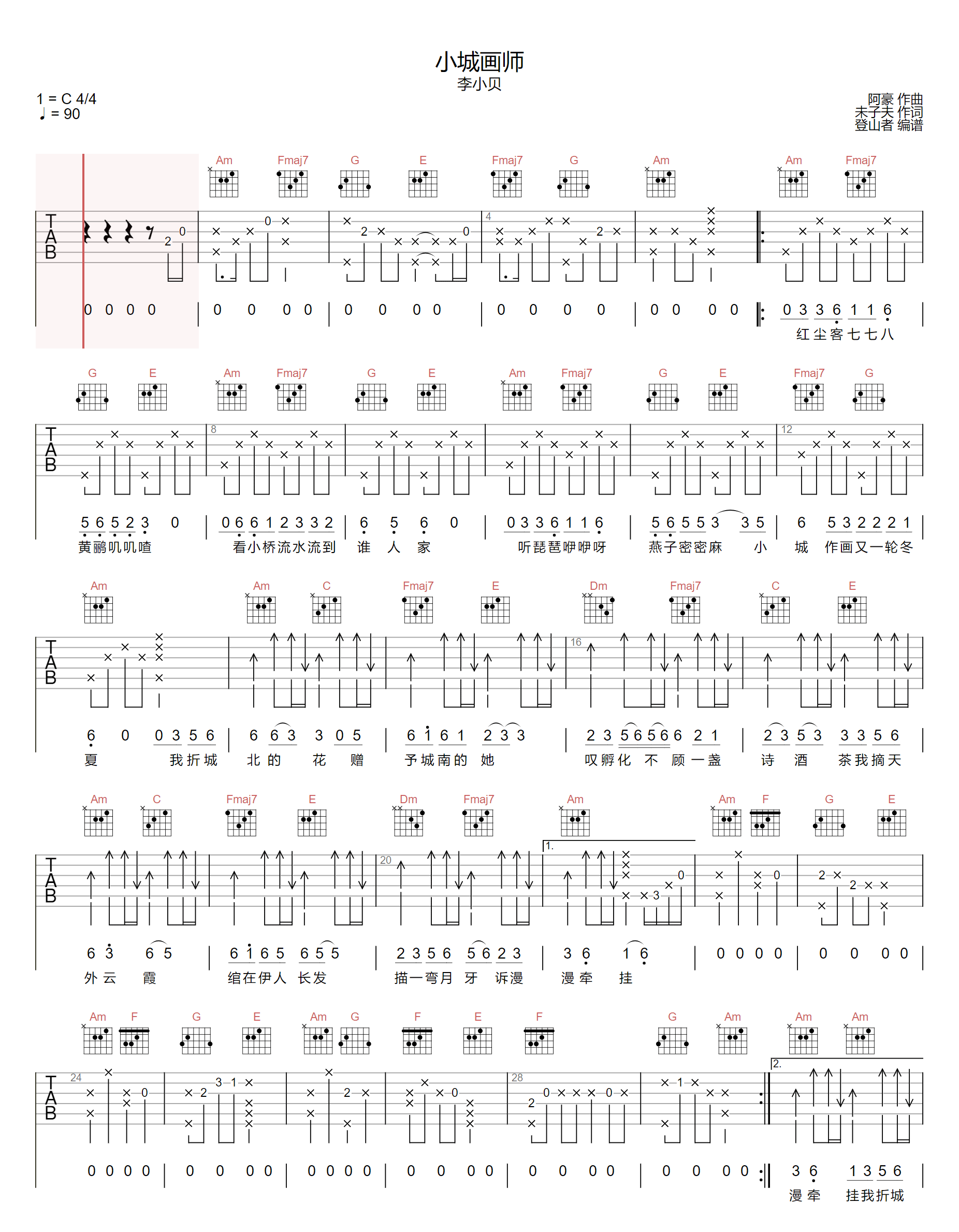 > 小城画师 C调原版编配