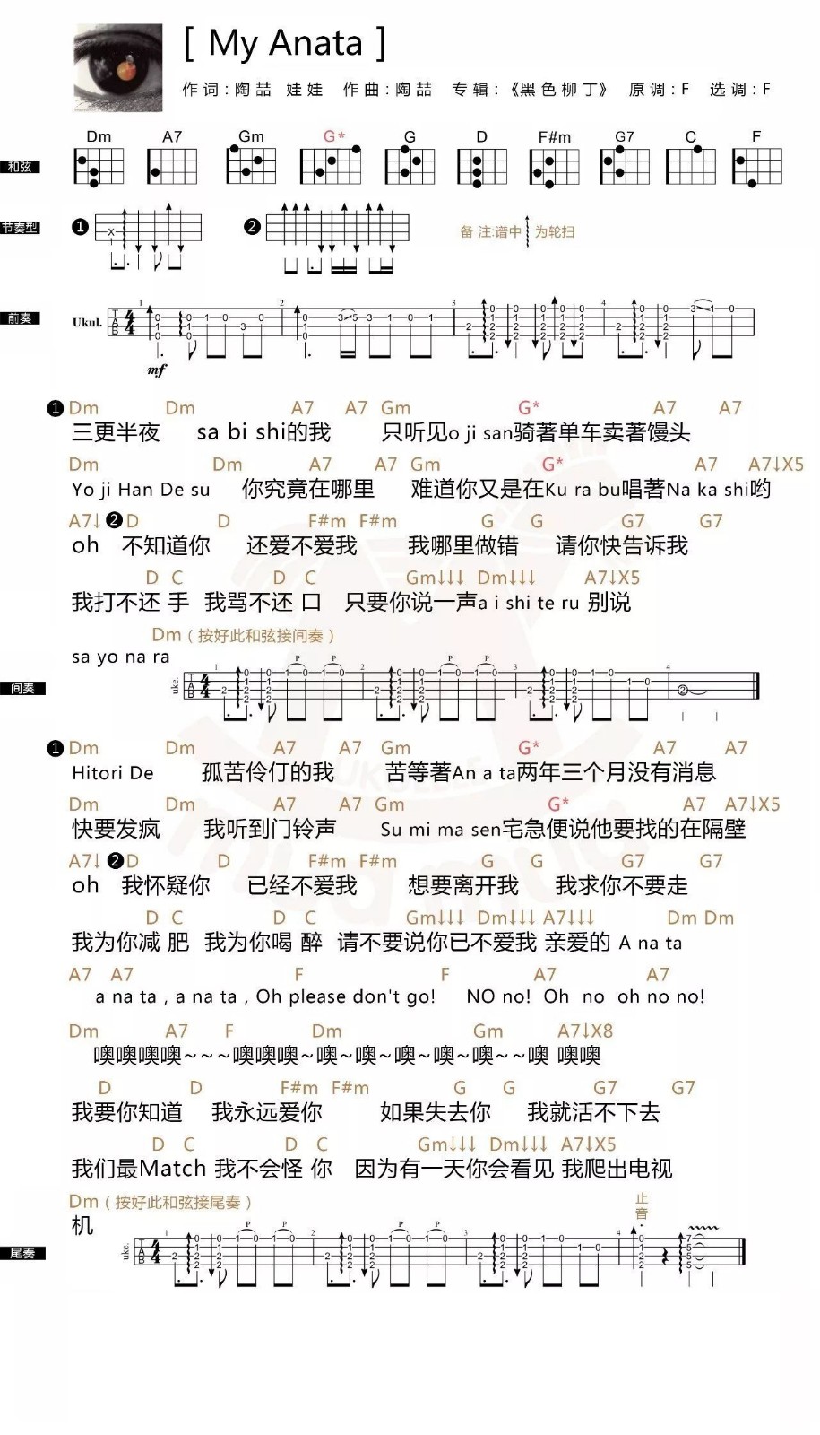 My Anata尤克里里谱 F调尤克里里弹唱谱
