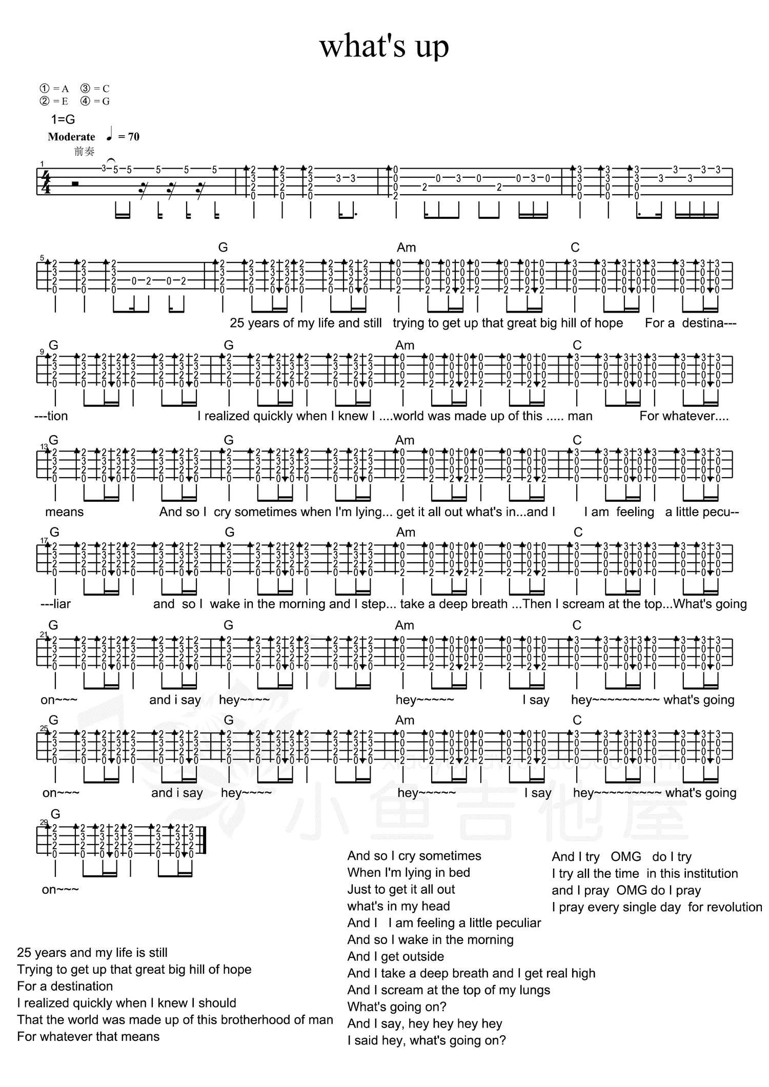 What s Up尤克里里谱 4 G调尤克里里弹唱谱