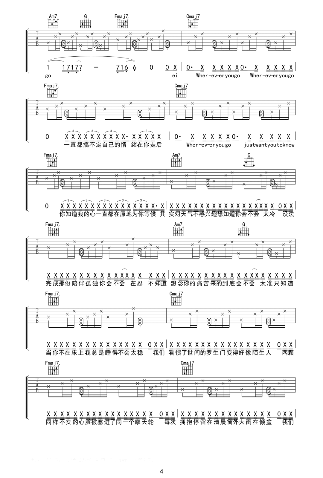 Follow 梨冻紧 C调指法编配