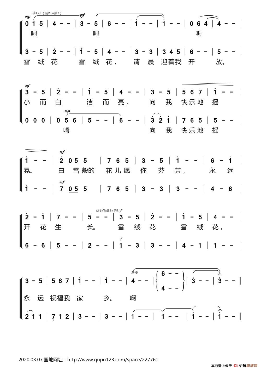 雪绒花 二声部合唱